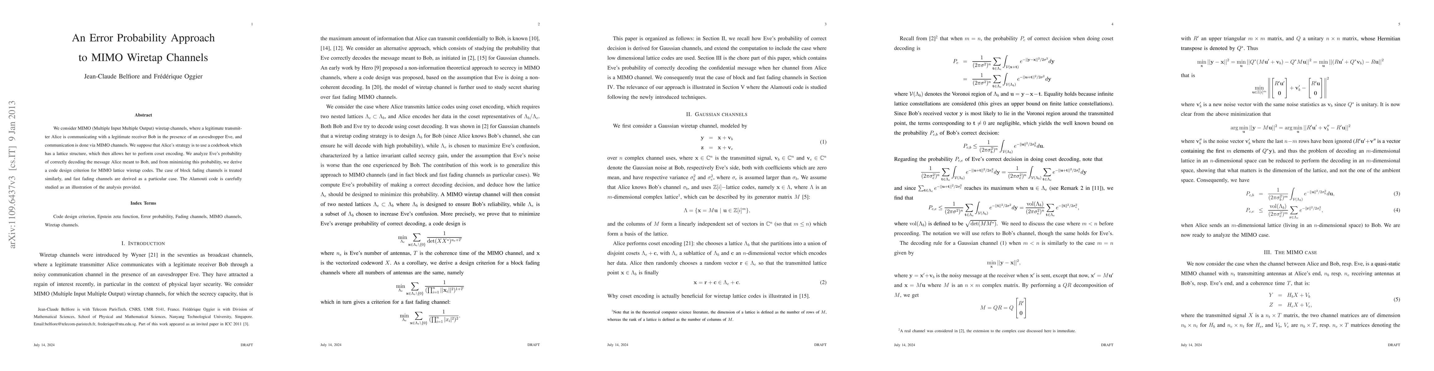 This paper investigates MIMO wiretap channels using lattice-based codebooks and coset encoding to minimize Eve's decoding probability. The study derives a code design criterion for MIMO lattice wiretap codes, with analyses for both block fading and fast fading channels, and includes an illustrative example using the Alamouti code.