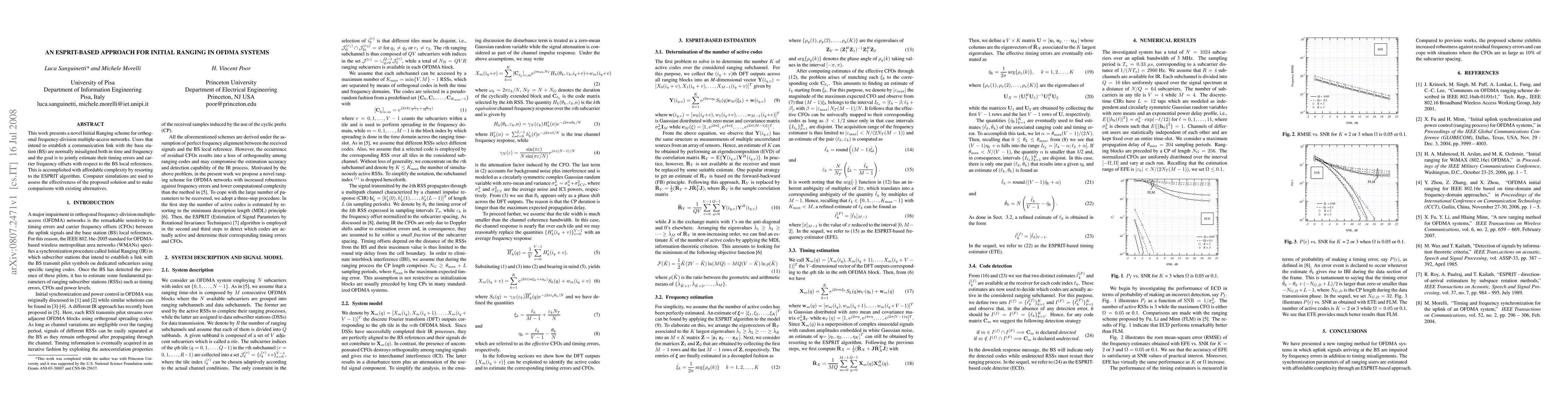 This work presents a novel Initial Ranging scheme for orthogonal frequency-division multiple-access networks. Users that intend to establish a communication link with the base station (BS) are normally misaligned both in time and frequency and the goal is to jointly estimate their timing errors and carrier frequency offsets with respect to the BS local references. This is accomplished with affordable complexity by resorting to the ESPRIT algorithm. Computer simulations are used to assess the effectiveness of the proposed solution and to make comparisons with existing alternatives.