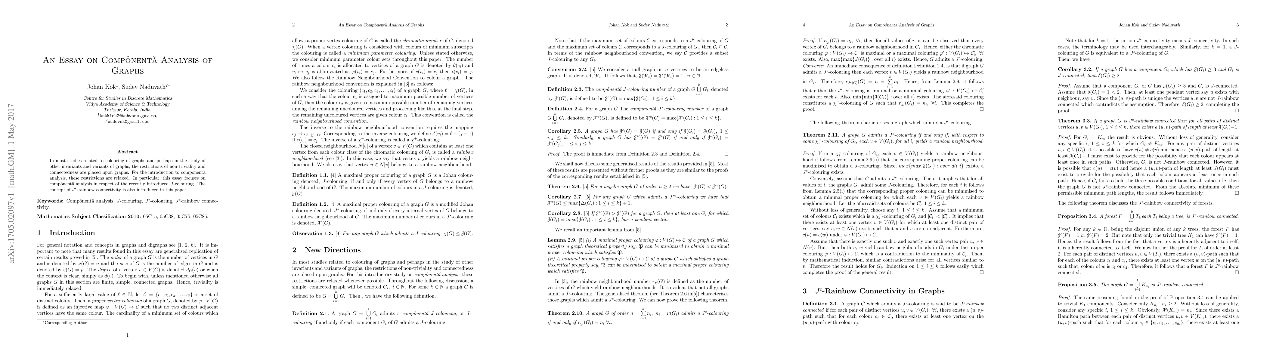 In most studies related to colouring of graphs and perhaps in the study of other invariants and variants of graphs, the restrictions of non-triviality and connectedness are placed upon graphs. For the introduction to comp\^{o}nent\u{a} analysis, these restrictions are relaxed. In particular, this essay focuses on comp\^{o}nent\u{a} analysis in respect of the recently introduced $J$-colouring. The concept of $J^c$-rainbow connectivity is also introduced in this paper.
