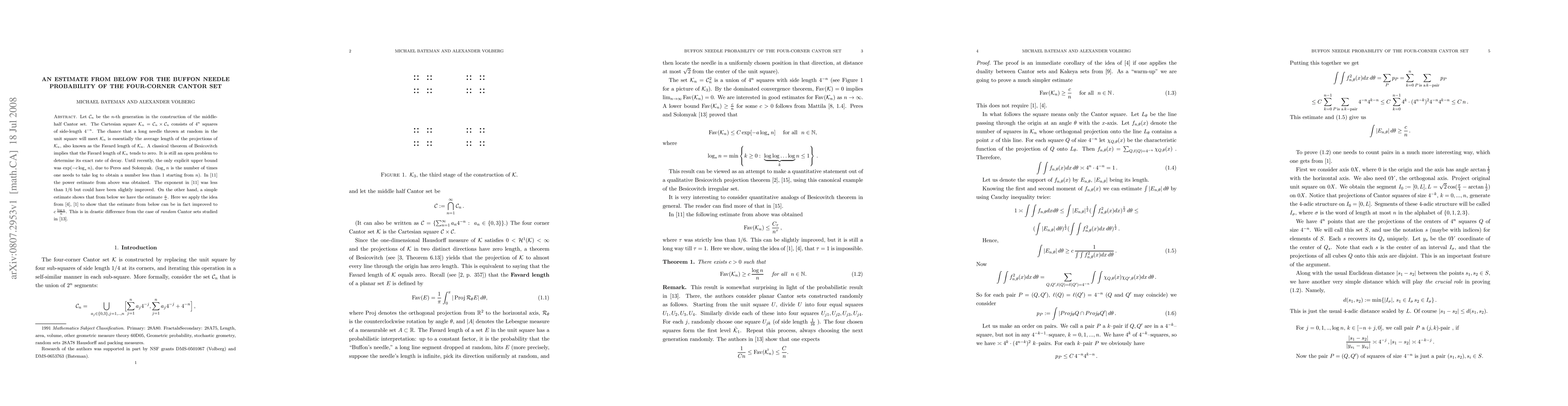 Let $\Cant_n$ be the $n$-th generation in the construction of the middle-half Cantor set. The Cartesian square $\K_n = \Cant_n \times \Cant_n$ consists of $4^n$ squares of side-length $4^{-n}$. The chance that a long needle thrown at random in the unit square will meet $\K_n$ is essentially the average length of the projections of $\K_n$, also known as the Favard length of $\K_n$. A classical theorem of Besicovitch implies that the Favard length of $\K_n$ tends to zero. It is still an open problem to determine its exact rate of decay. Until recently, the only explicit upper bound was $\exp(- c\log_* n)$, due to Peres and Solomyak. ($\log_* n$ is the number of times one needs to take log to obtain a number less than 1 starting from $n$). In Nazarov-Peres-Volberg paper (arxiv:math 0801.2942) the power estimate from above was obtained. The exponent in this paper was less than 1/6 but could have been slightly improved. On the other hand, a simple estimate shows that from below we have the estimate $\frac{c}{n}$. Here we apply the idea from papers of Nets Katz (MRL (1996), 527-536) and Bateman-Katz (arxiv:math/0609187v1 2006) to show that the estimate from below can be in fact improved to $c \frac{\log n}{n}$. This is in drastic difference from the case of {\em random} Cantor sets studied by Peres and Solomyak in Pacific J. Math. 204 (2002), 473-496.
