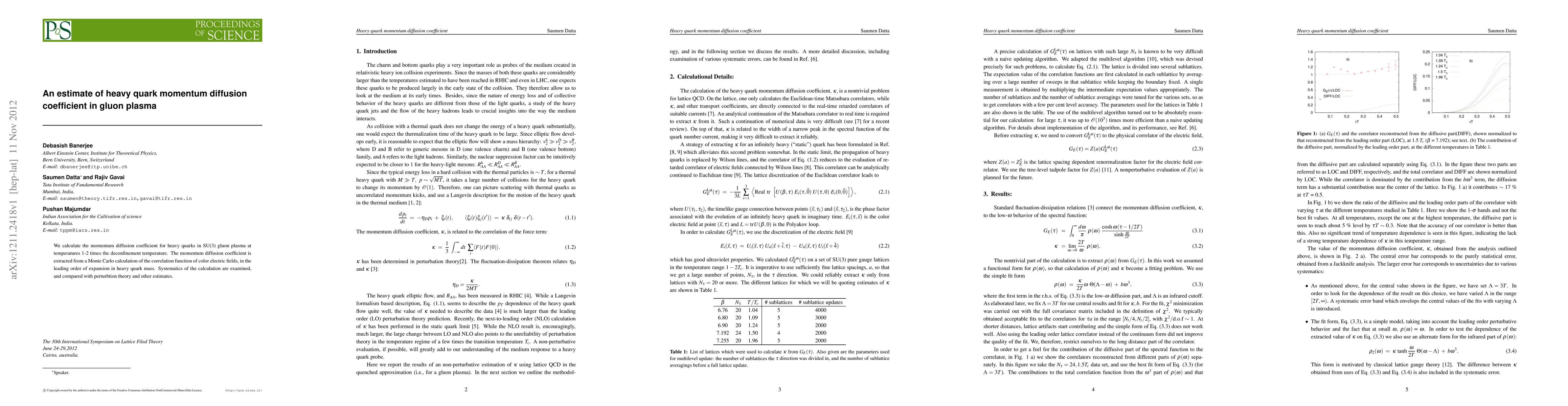 This paper estimates the momentum diffusion coefficient for heavy quarks in a gluon plasma at temperatures above the deconfinement threshold, using a Monte Carlo simulation of color electric field correlations. The results are compared with perturbation theory and other estimates to examine systematics.