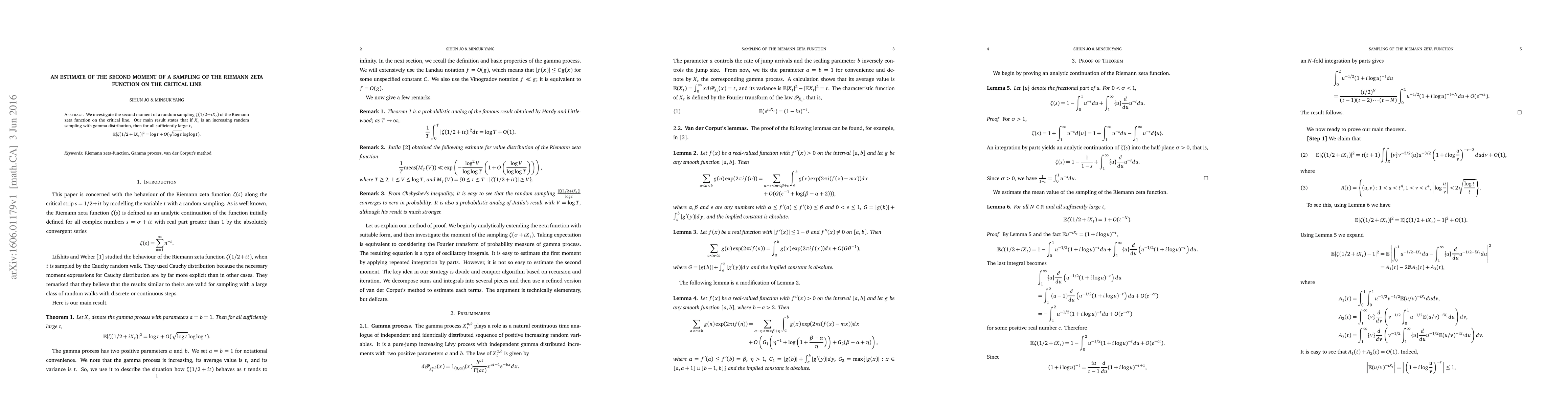 This research paper estimates the second moment of a random sample of the Riemann zeta function along the critical line. The key finding is that for a gamma-distributed random variable X_t, the expected value of the squared magnitude of the zeta function, E|ζ(1/2+iXt)|.^2, is log t plus a secondary term O(√(log t) log log t) for sufficiently large t.