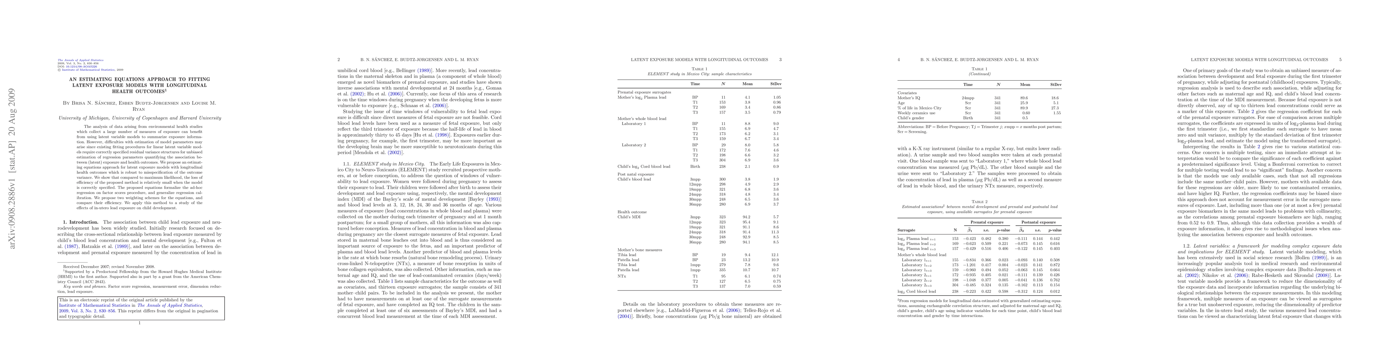 This paper proposes an estimating equations approach for latent exposure models with longitudinal health outcomes, which is robust to misspecification of outcome variance. Compared to maximum likelihood, the method shows relatively small efficiency loss when the model is correctly specified, and it generalizes regression calibration. The method is applied to study the effects of in-utero lead exposure on child development.
