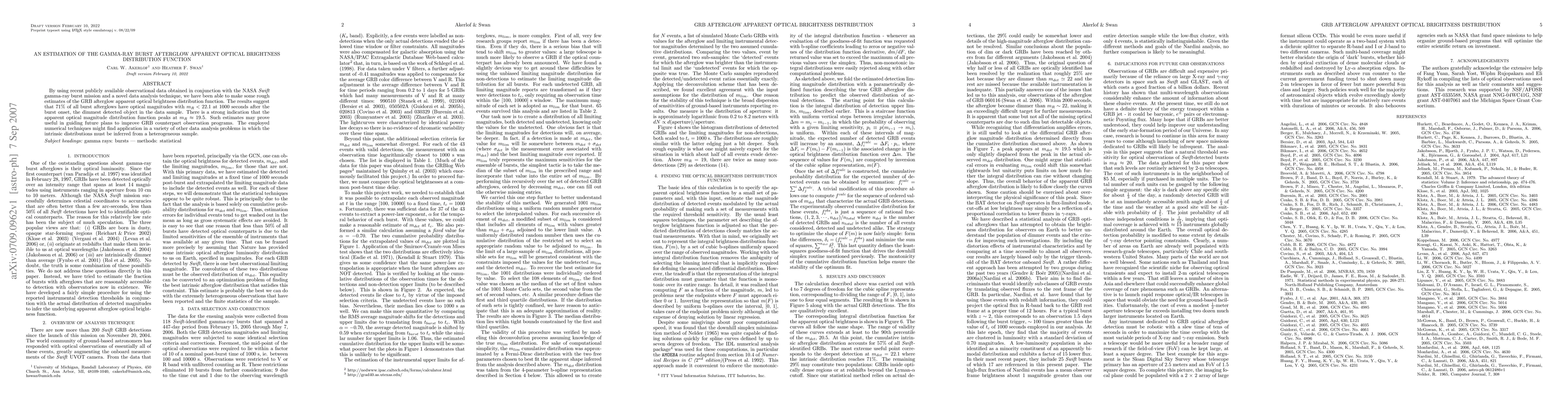 By using recent publicly available observational data obtained in conjunction with the NASA Swift gamma-ray burst mission and a novel data analysis technique, we have been able to make some rough estimates of the GRB afterglow apparent optical brightness distribution function. The results suggest that 71% of all burst afterglows have optical magnitudes with mR < 22.1 at 1000 seconds after the burst onset, the dimmest detected object in the data sample. There is a strong indication that the apparent optical magnitude distribution function peaks at mR ~ 19.5. Such estimates may prove useful in guiding future plans to improve GRB counterpart observation programs. The employed numerical techniques might find application in a variety of other data analysis problems in which the intrinsic distributions must be inferred from a heterogeneous sample.