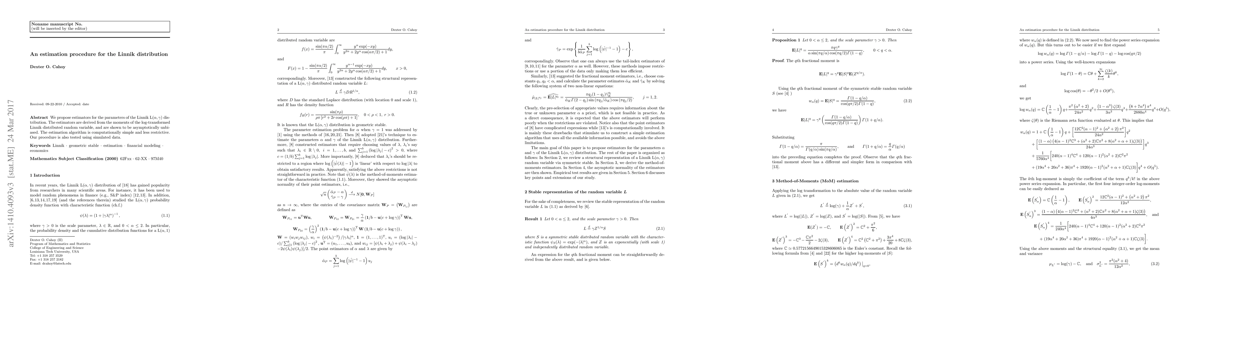 We propose estimators for the parameters of the Linnik L$(\alpha,\gamma)$ distribution. The estimators are derived from the moments of the log-transformed Linnik distributed random variable, and are shown to be asymptotically unbiased. The estimation algorithm is computationally simple and less restrictive. Our procedure is also tested using simulated data.