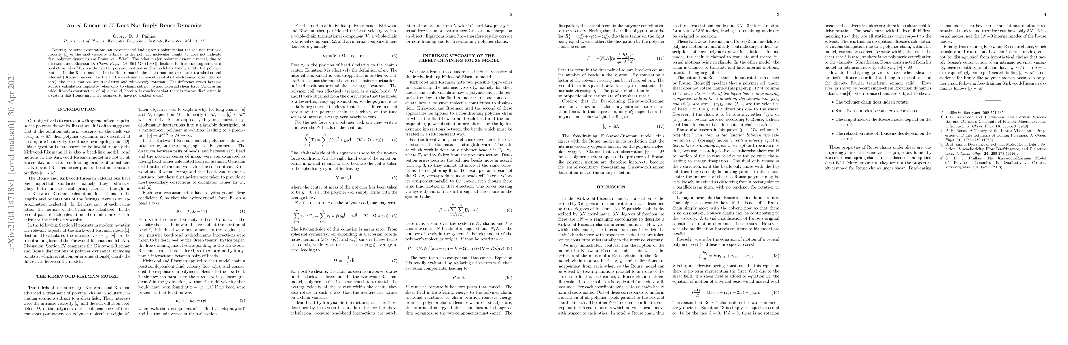This paper argues that a linear relationship between intrinsic viscosity $[\eta]$ or melt viscosity and polymer molecular weight $M$ does not imply Rouse-like dynamics. It shows that the Kirkwood-Riseman model, which predicts $[\eta] \sim M$, describes a different set of polymer motions involving translation and whole-body rotation, not the linear translation and internal modes of the Rouse model.