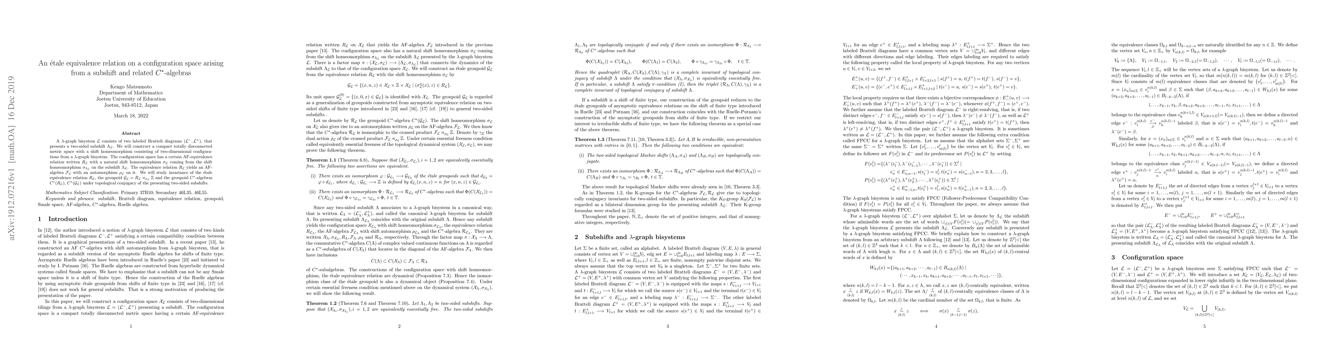 A $\lambda$-graph bisystem $\mathcal{L}$ consists of two labeled Bratteli diagrams $(\mathcal{L}^-,\mathcal{L}^+)$, that presents a two-sided subshift $\Lambda_\mathcal{L}$. We will construct a compact totally disconnected metric space with a shift homeomorphism consisting of two-dimensional configurations from a $\lambda$-graph bisystem. The configuration space has a certain \'etale AF-equivalence relation written $R_{\mathcal{L}}$ with a natural shift homeomorphism $\sigma_{\mathcal{L}}$ coming from the shift homeomorphism $\sigma_{\Lambda_{\mathcal{L}}}$ on the subshift $\Lambda_{\mathcal{L}}$. The equivalence relation $R_{\mathcal{L}}$ yields an AF-algebra ${\mathcal{F}}_{\mathcal{L}}$ with an automorphism $\rho_{\mathcal{L}}$ on it. We will study invariance of the \'etale equivalence relation $R_{\mathcal{L}}$, the groupoid $\mathcal{G}_{\mathcal{L}}=R_{\mathcal{L}}\rtimes_{\sigma_{\mathcal{L}}}{\mathbb{Z}}$ and the groupoid $C^*$-algebras $C^*(R_{\mathcal{L}})$, $C^*(\mathcal{G}_{\mathcal{L}})$ under topological conjugacy of the presenting two-sided subshifts.