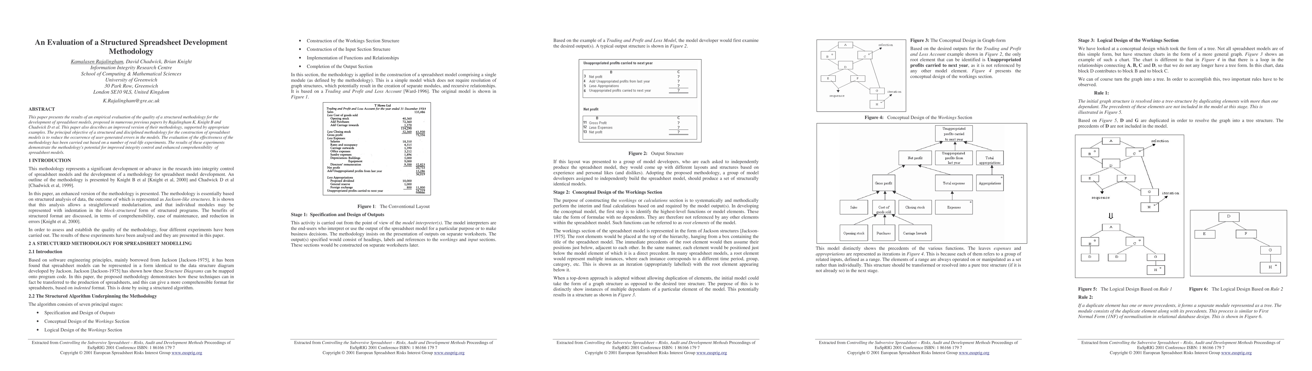 This paper presents the results of an empirical evaluation of the quality of a structured methodology for the development of spreadsheet models, proposed in numerous previous papers by Rajalingham K, Knight B and Chadwick D et al. This paper also describes an improved version of their methodology, supported by appropriate examples. The principal objective of a structured and disciplined methodology for the construction of spreadsheet models is to reduce the occurrence of user-generated errors in the models. The evaluation of the effectiveness of the methodology has been carried out based on a number of real-life experiments. The results of these experiments demonstrate the methodology's potential for improved integrity control and enhanced comprehensibility of spreadsheet models.