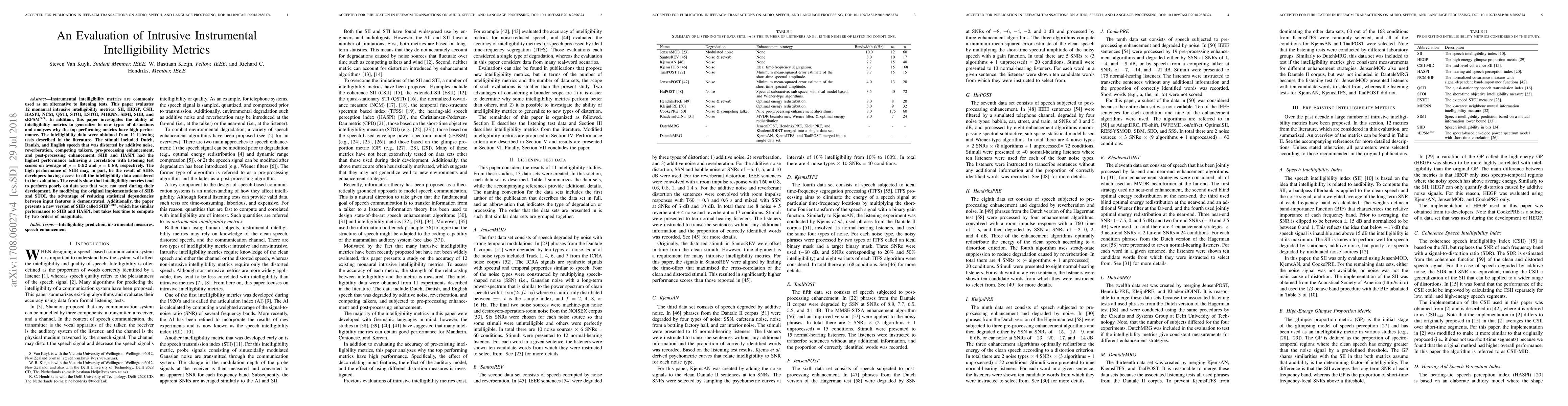 Instrumental intelligibility metrics are commonly used as an alternative to listening tests. This paper evaluates 12 monaural intrusive intelligibility metrics: SII, HEGP, CSII, HASPI, NCM, QSTI, STOI, ESTOI, MIKNN, SIMI, SIIB, and $\text{sEPSM}^\text{corr}$. In addition, this paper investigates the ability of intelligibility metrics to generalize to new types of distortions and analyzes why the top performing metrics have high performance. The intelligibility data were obtained from 11 listening tests described in the literature. The stimuli included Dutch, Danish, and English speech that was distorted by additive noise, reverberation, competing talkers, pre-processing enhancement, and post-processing enhancement. SIIB and HASPI had the highest performance achieving a correlation with listening test scores on average of $\rho=0.92$ and $\rho=0.89$, respectively. The high performance of SIIB may, in part, be the result of SIIBs developers having access to all the intelligibility data considered in the evaluation. The results show that intelligibility metrics tend to perform poorly on data sets that were not used during their development. By modifying the original implementations of SIIB and STOI, the advantage of reducing statistical dependencies between input features is demonstrated. Additionally, the paper presents a new version of SIIB called $\text{SIIB}^\text{Gauss}$, which has similar performance to SIIB and HASPI, but takes less time to compute by two orders of magnitude.