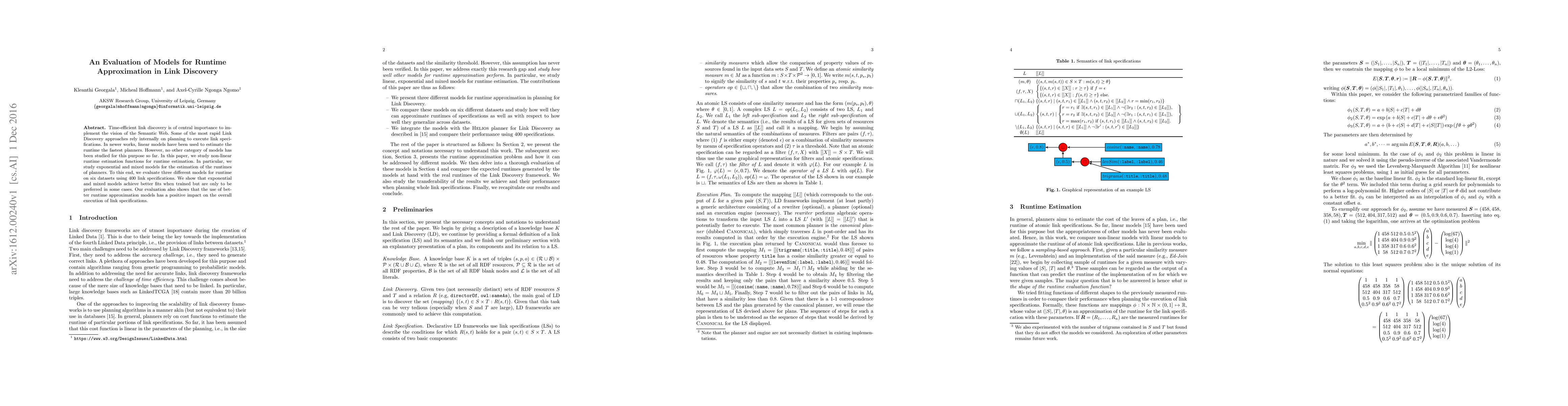 Time-efficient link discovery is of central importance to implement the vision of the Semantic Web. Some of the most rapid Link Discovery approaches rely internally on planning to execute link specifications. In newer works, linear models have been used to estimate the runtime the fastest planners. However, no other category of models has been studied for this purpose so far. In this paper, we study non-linear runtime estimation functions for runtime estimation. In particular, we study exponential and mixed models for the estimation of the runtimes of planners. To this end, we evaluate three different models for runtime on six datasets using 400 link specifications. We show that exponential and mixed models achieve better fits when trained but are only to be preferred in some cases. Our evaluation also shows that the use of better runtime approximation models has a positive impact on the overall execution of link specifications.