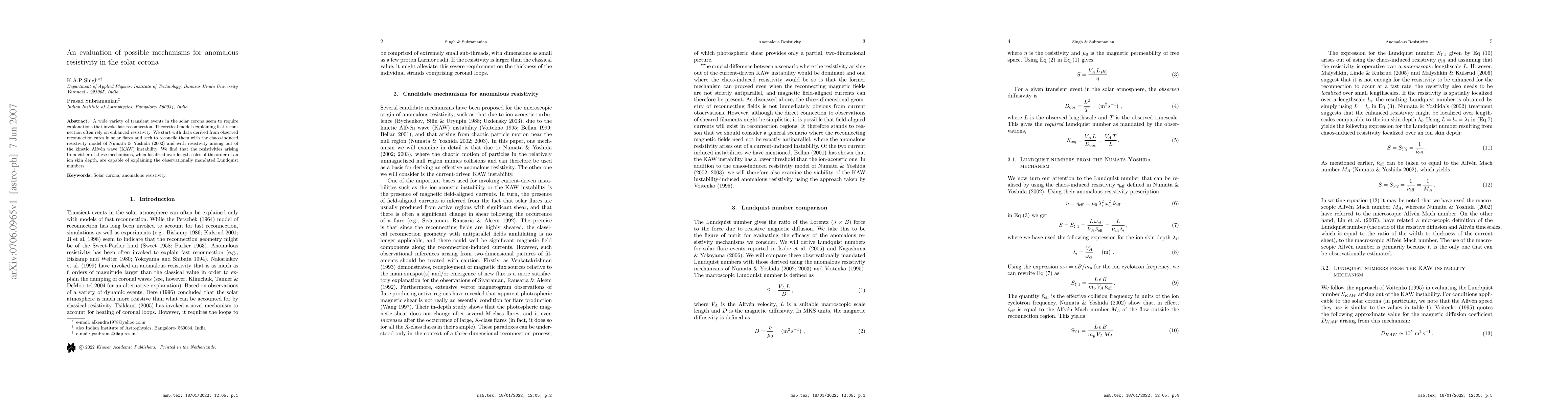 Researchers evaluated two mechanisms for anomalous resistivity in the solar corona, finding that localized resistivities can explain observed reconnection rates in solar flares. This reconciles theoretical models with observational data, shedding light on complex solar coronal phenomena.