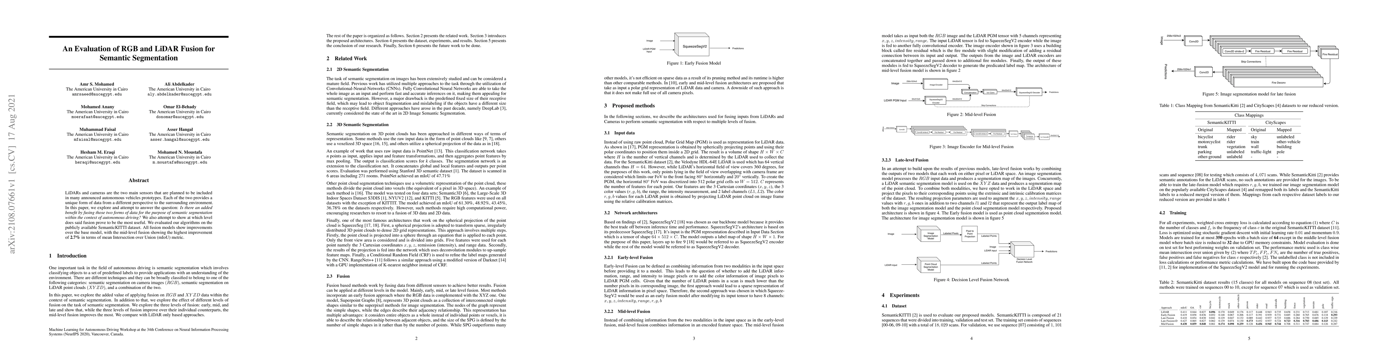 LiDARs and cameras are the two main sensors that are planned to be included in many announced autonomous vehicles prototypes. Each of the two provides a unique form of data from a different perspective to the surrounding environment. In this paper, we explore and attempt to answer the question: is there an added benefit by fusing those two forms of data for the purpose of semantic segmentation within the context of autonomous driving? We also attempt to show at which level does said fusion prove to be the most useful. We evaluated our algorithms on the publicly available SemanticKITTI dataset. All fusion models show improvements over the base model, with the mid-level fusion showing the highest improvement of 2.7% in terms of mean Intersection over Union (mIoU) metric.