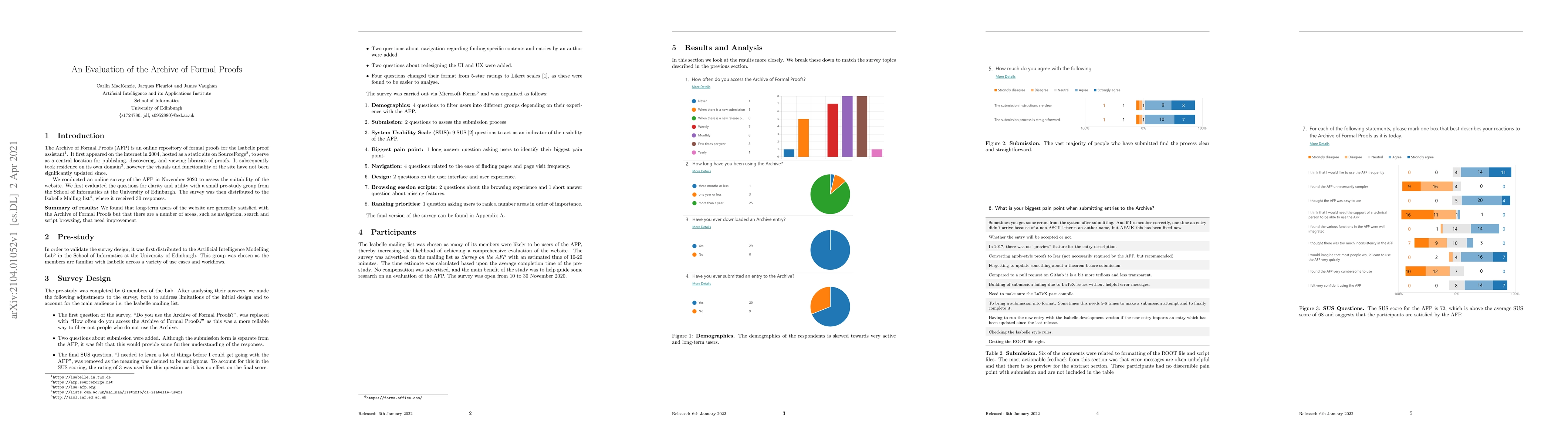 The Archive of Formal Proofs (AFP) is a repository for Isabelle proof libraries, and a survey conducted in 2020 revealed that long-term users are generally satisfied, though areas like navigation, search, and script browsing require enhancements.