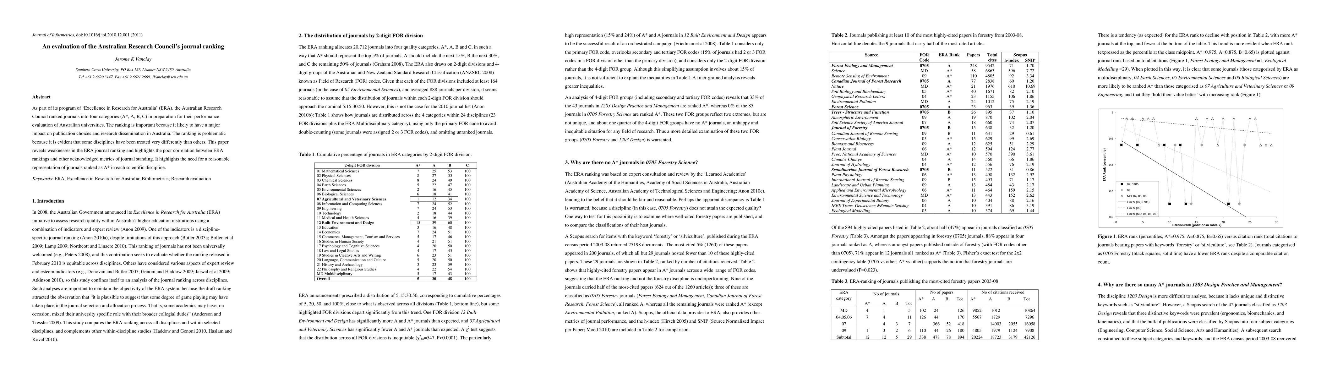 This paper evaluates the Australian Research Council's journal ranking system, revealing significant discrepancies in treatment across disciplines and a poor correlation with other metrics of journal standing, thus questioning the fairness and effectiveness of the ranking for research evaluation.