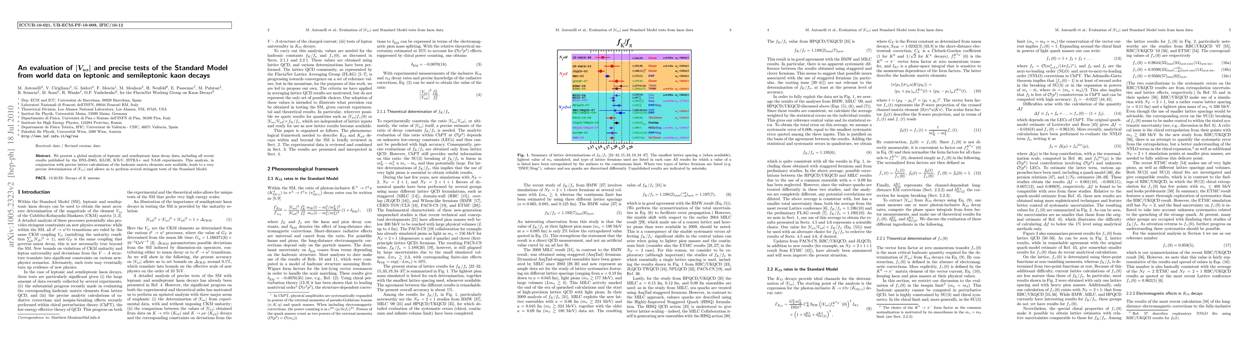 This paper provides a global analysis of recent experimental data from various kaon decay experiments, leading to a precise determination of the |Vus| parameter and enabling rigorous tests of the Standard Model. The results are supported by state-of-the-art lattice calculations for hadronic matrix elements.