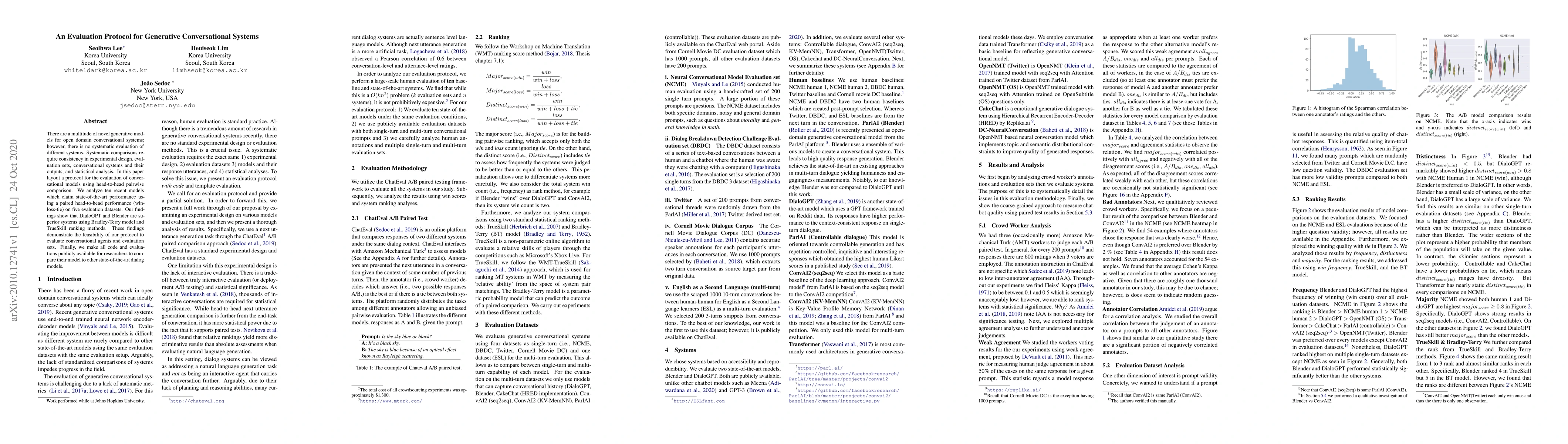 This paper proposes a systematic evaluation protocol for generative conversational systems, comparing ten state-of-the-art models using a head-to-head pairwise comparison across five datasets. The study finds DialoGPT and Blender to be the superior models, demonstrating the effectiveness of the proposed evaluation method.