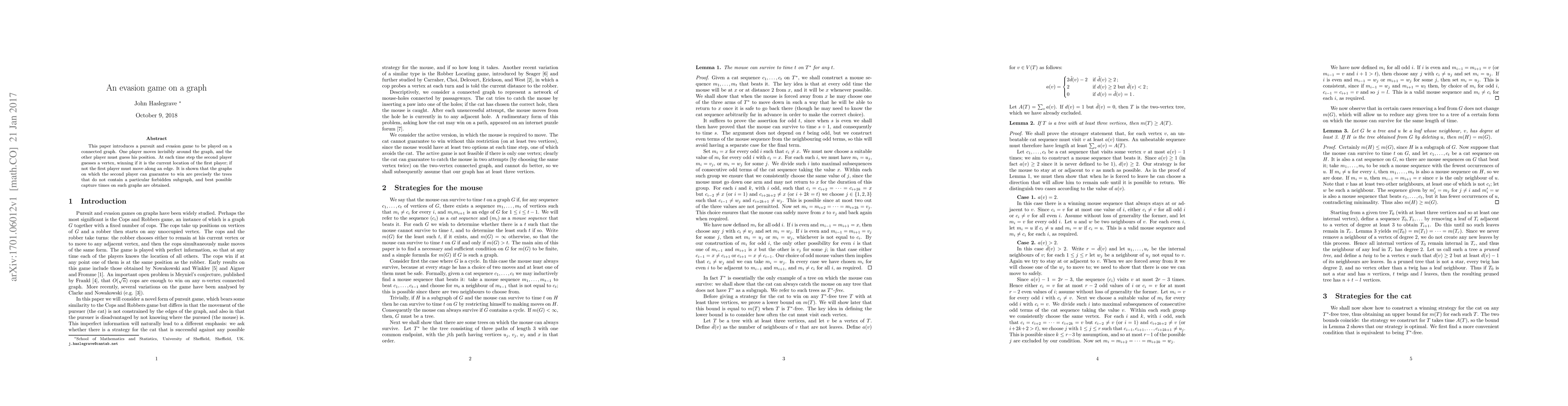 This paper introduced a pursuit and evasion game to be played on a connected graph. One player moves invisibly around the graph, and the other player must guess his position. At each time step the second player guesses a vertex, winning if it is the current location of the first player; if not the first player must move along an edge. It is shown that the graphs on which the second player can guarantee to win are precisely the trees that do not contain a particular forbidden subgraph, and best possible capture times on such graphs are obtained.