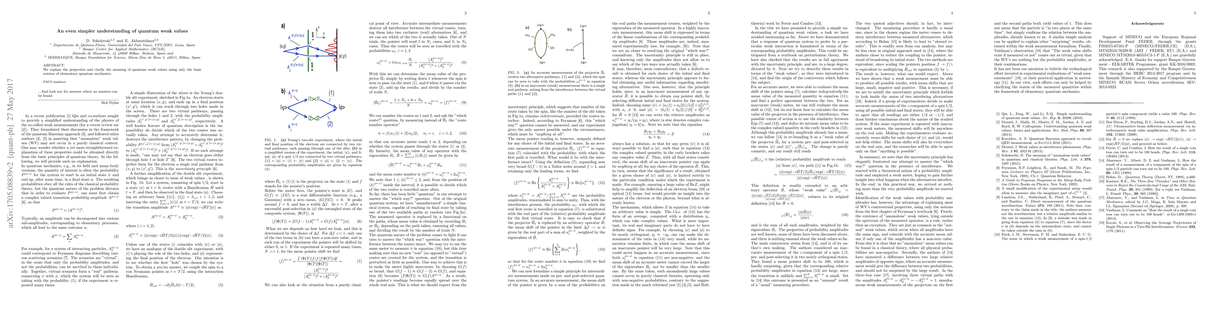 Summary: This paper simplifies the understanding of quantum weak values by explaining their properties and meaning through fundamental concepts of elementary quantum mechanics, making the topic accessible to a broader audience.