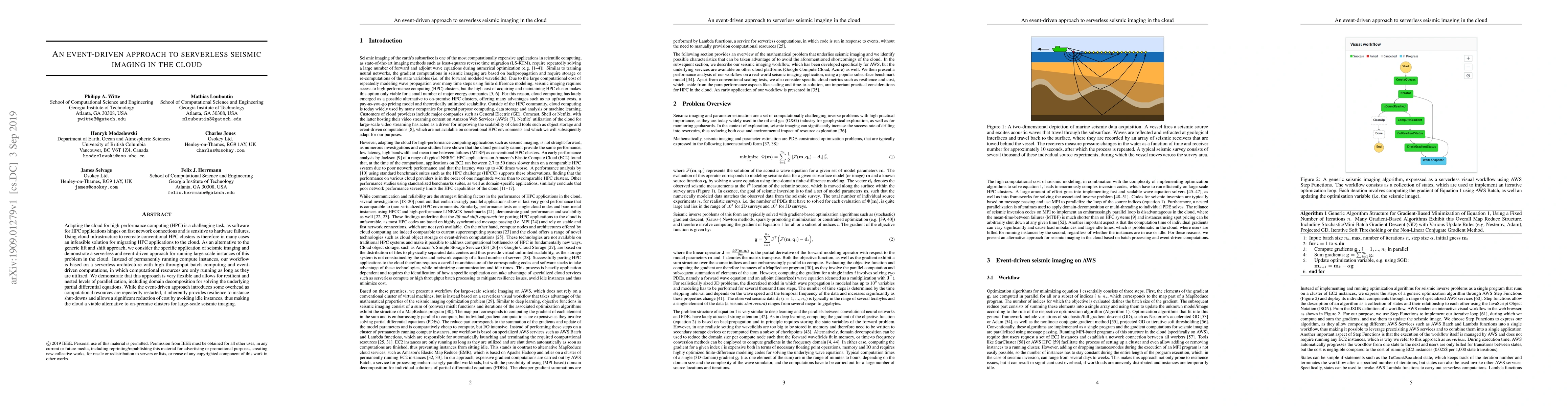 This paper proposes a serverless, event-driven method for high-performance seismic imaging in the cloud, leveraging flexible, on-demand compute resources to avoid idle instances and reduce costs while maintaining resilience against hardware failures.