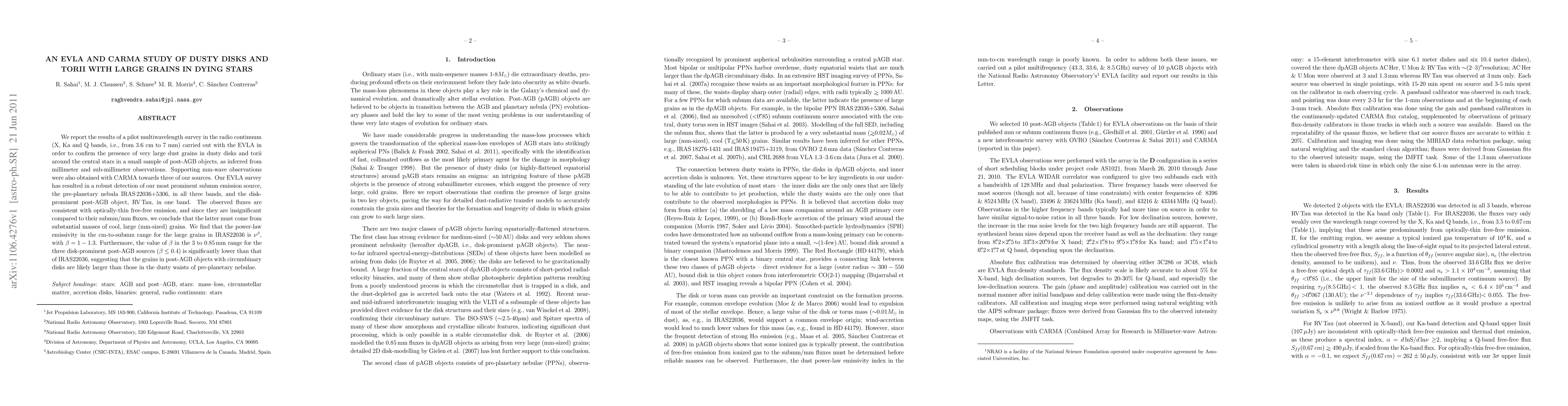 This study uses EVLA and CARMA observations to detect large dust grains in dusty disks and torii around dying stars, confirming substantial masses of mm-sized grains. The findings suggest that grains in post-AGB objects with circumbinary disks are larger than those in pre-planetary nebulae.