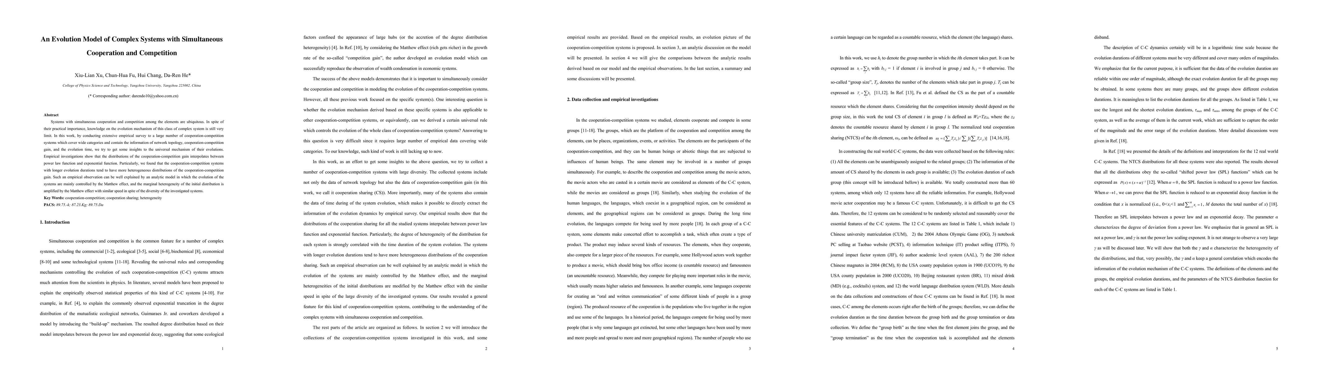 This paper investigates the evolution mechanisms of complex systems characterized by simultaneous cooperation and competition. Empirical surveys reveal that the cooperation-competition gain distributions interpolate between power law and exponential functions, with longer evolution durations leading to more heterogeneous distributions, explained by an analytic model based on the Matthew effect.