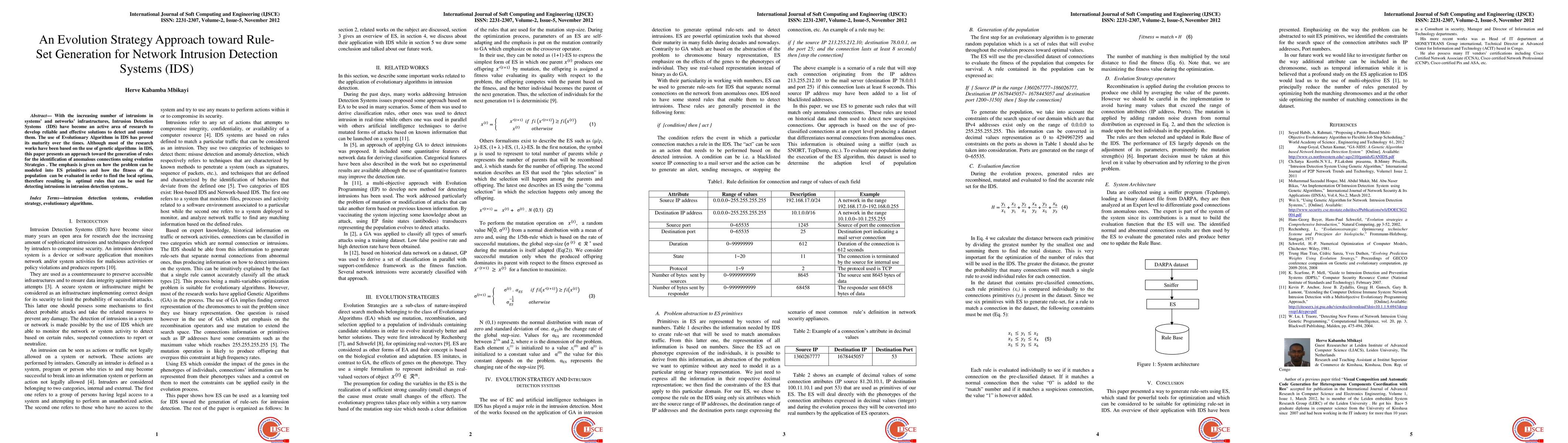 This paper explores the application of evolution strategies to generate optimal rules for network intrusion detection systems, focusing on modeling the problem into ES primitives and evaluating population fitness to identify local optima for effective intrusion detection.