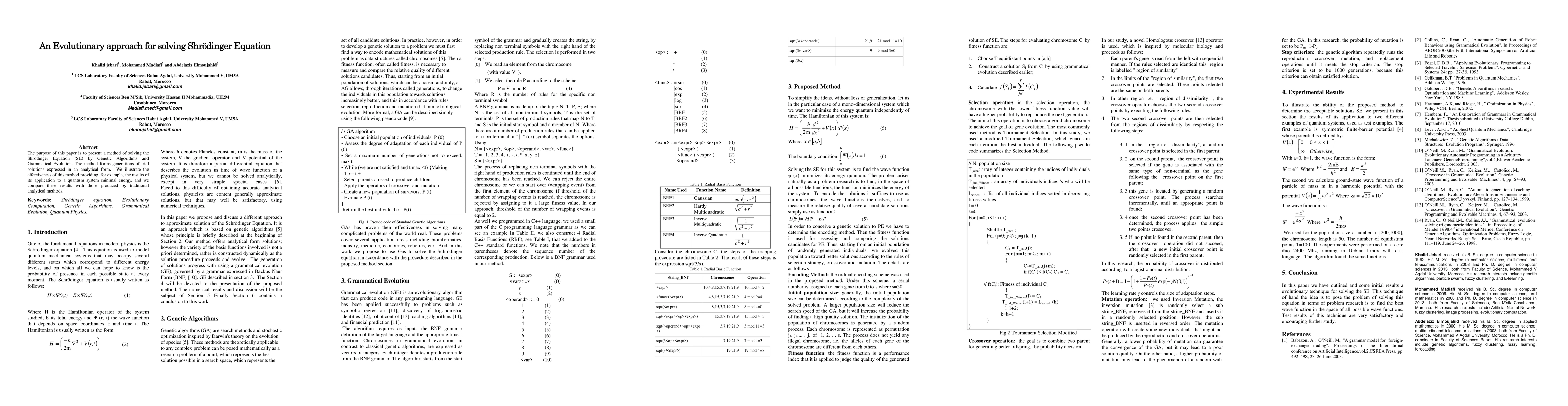 A new method uses Genetic Algorithms and Grammatical Evolution to solve the Shr"odinger Equation, offering an alternative to traditional analytical methods with promising results in minimizing energy for quantum systems.