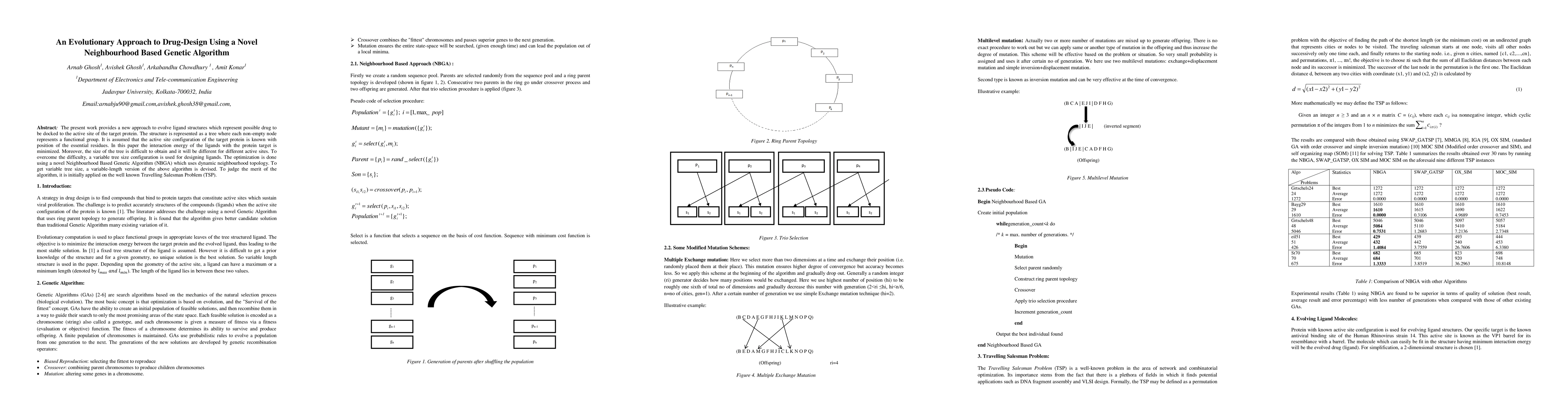 This paper introduces a novel Neighbourhood Based Genetic Algorithm (NBGA) for evolving ligand structures to optimize drug design. The algorithm dynamically adjusts its neighbourhood topology and tree size to minimize interaction energy with target proteins, demonstrating its effectiveness through application to the Travelling Salesman Problem.