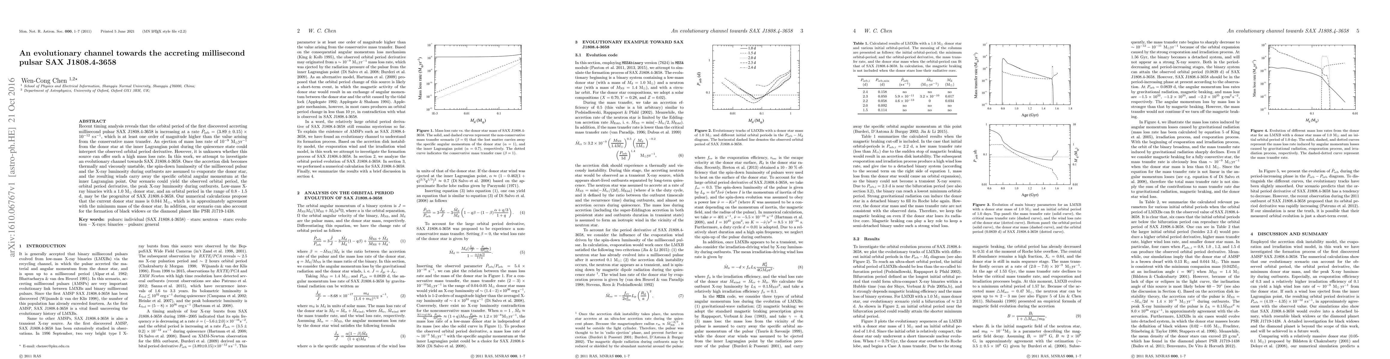 Recent timing analysis reveals that the orbital period of the first discovered accreting millisecond pulsar SAX J1808.4-3658 is increasing at a rate $\dot{P}_{\rm orb}=(3.89\pm0.15)\times 10^{-12}~\rm s\,s^{-1}$, which is at least one order of magnitude higher than the value arising from the conservative mass transfer. An ejection of mass loss rate of $10^{-9}~\rm M_{\odot}{\rm yr}^{-1}$ from the donor star at the inner Lagrangian point during the quiescence state could interpret the observed orbital period derivative. However, it is unknown whether this source can offer such a high mass loss rate. In this work, we attempt to investigate an evolutionary channel towards SAX J1808.4-3658. Once the accretion disk becomes thermally and viscously unstable, the spin-down luminosity of the millisecond pulsar and the X-ray luminosity during outbursts are assumed to evaporate the donor star, and the resulting winds carry away the specific orbital angular momentum at the inner Lagrangian point. Our scenario could yield the observed orbital period, the orbital period derivative, the peak X-ray luminosity during outbursts. Low-mass X-ray binaries with a $1.0~\rm M_{\odot}$ donor star, and an orbital period in the range of 0.8 - 1.5 d, may be the progenitor of SAX J1808.4-3658. Our numerical calculations propose that the current donor star mass is $0.044 ~\rm M_{\odot}$, which is in approximately agreement with the minimum mass of the donor star. In addition, our scenario can also account for the formation of black widows or the diamond planet like PSR J1719-1438.