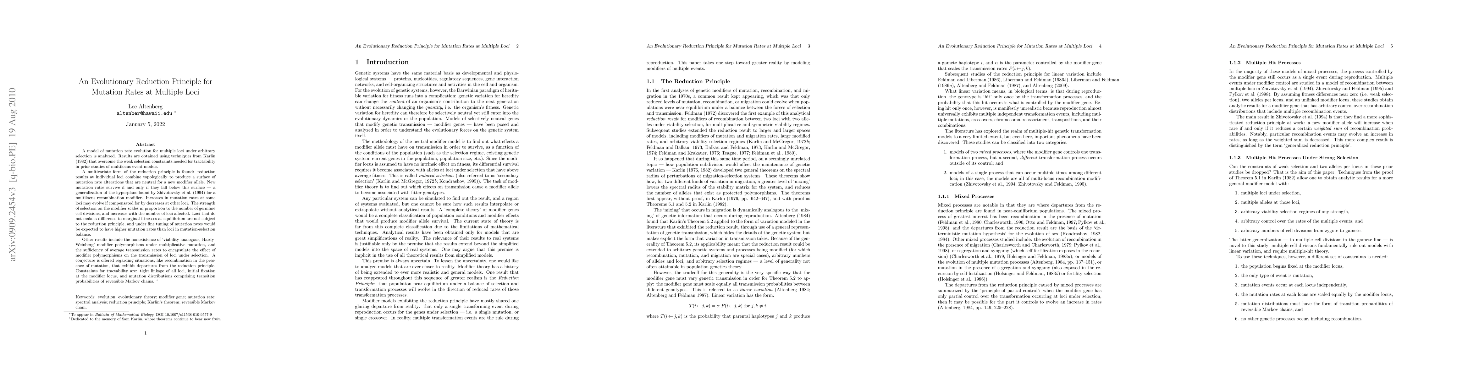 A model of mutation rate evolution under selection at multiple loci shows that reduction principles govern the co-evolution of mutations and selection, with implications for understanding modifier polymorphisms and their effects on transmission rates.