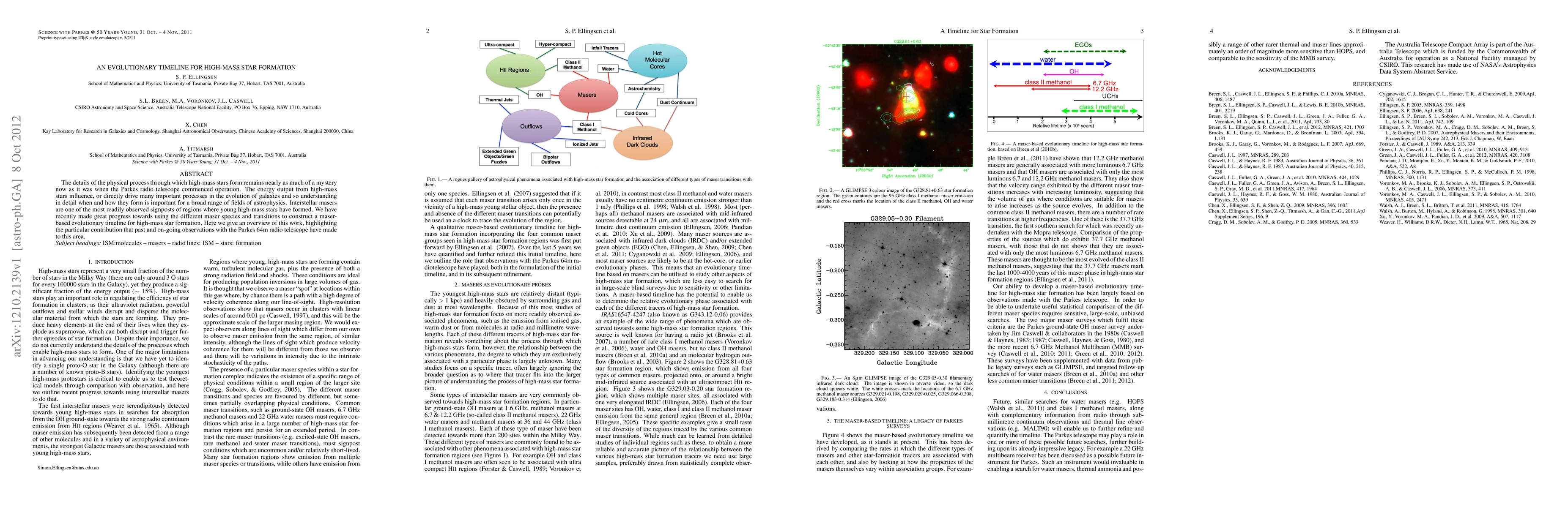 This paper presents an evolutionary timeline for high-mass star formation using interstellar masers, highlighting significant contributions from the Parkes 64m radio telescope. The timeline aims to elucidate the physical processes underlying the formation of high-mass stars, which are crucial for understanding galactic evolution.