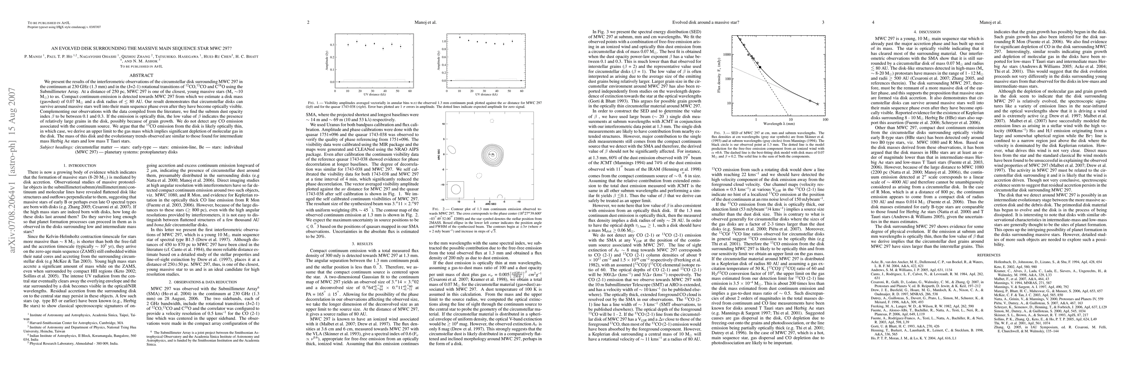 The Submillimeter Array reveals a compact circumstellar disk around the young massive star MWC 297, with a mass of 0.07 M$_{\odot}$ and radius ≤ 80 AU, demonstrating that such disks can persist into the main sequence phase. The low submm dust opacity suggests large grains, indicative of grain growth, while the lack of CO emission implies significant gas depletion.
