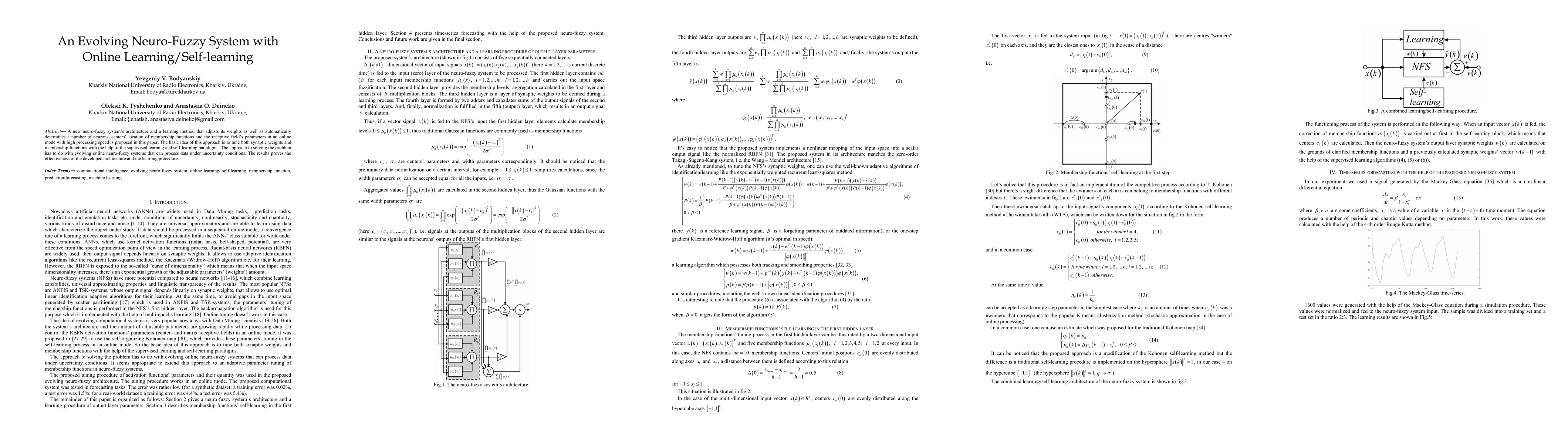 This paper proposes a new neuro-fuzzy system architecture that tunes both synaptic weights and membership functions using supervised and self-learning methods. The system demonstrates effectiveness in processing data under uncertainty conditions through online learning.