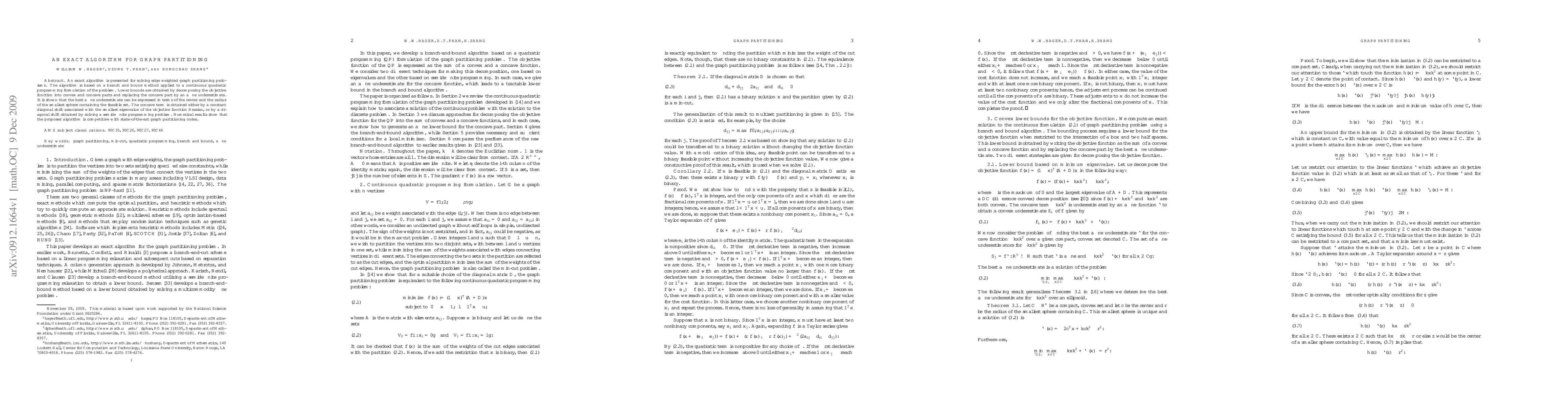 Researchers developed an exact algorithm for graph partitioning using a branch and bound method, achieving competitive results with existing codes. The approach involves approximating the concave part of the objective function to improve efficiency.
