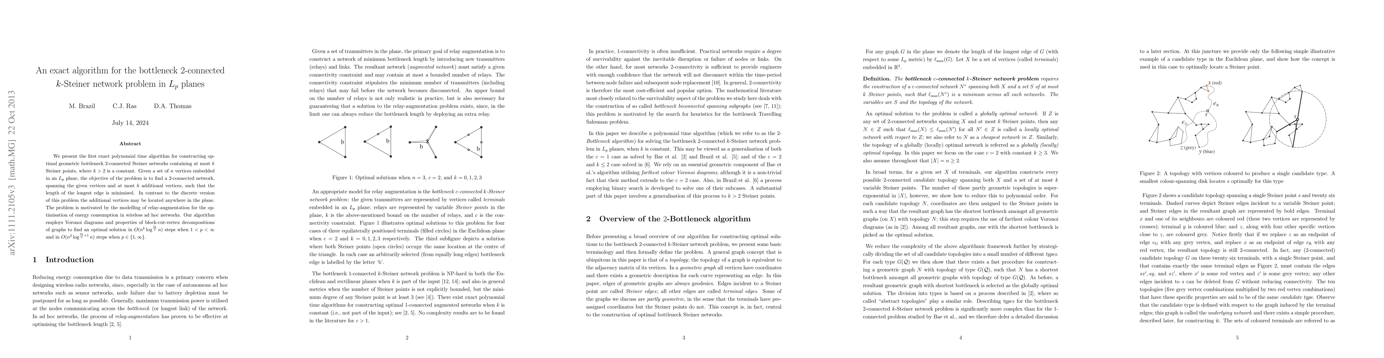 This paper introduces the first exact polynomial time algorithm for solving the bottleneck 2-connected $k$-Steiner network problem in $L_p$ planes, aiming to minimize the longest edge in a network spanning given vertices and at most $k$ additional Steiner points. The algorithm leverages Voronoi diagrams and graph decompositions to achieve optimal solutions in specified polynomial time complexities.