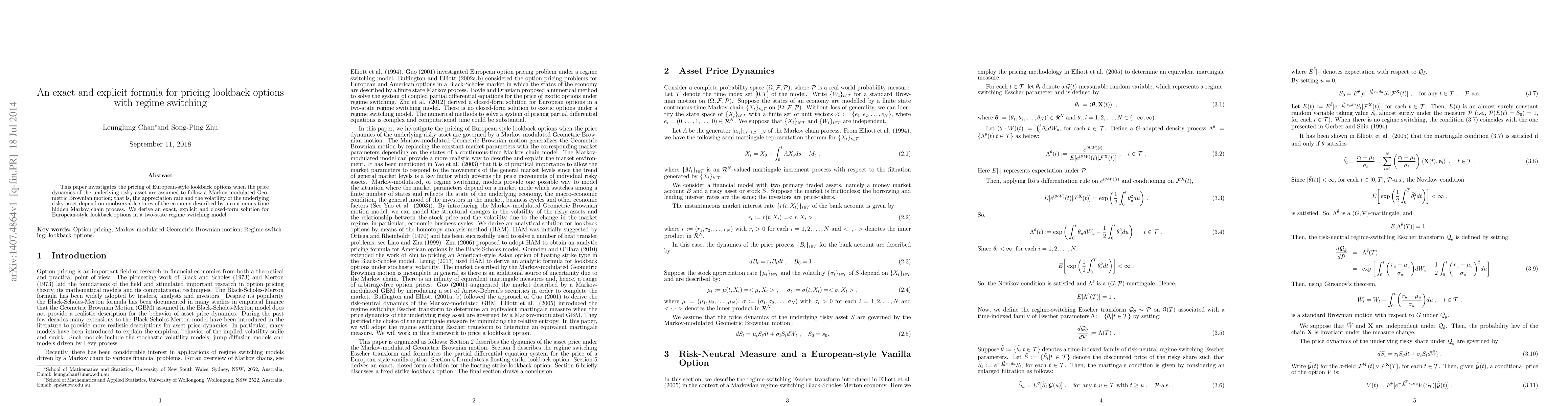 This paper derives an exact, explicit, and closed-form solution for pricing European-style lookback options under a Markov-modulated Geometric Brownian motion model with regime switching, capturing the impact of unobservable economic states on asset dynamics.