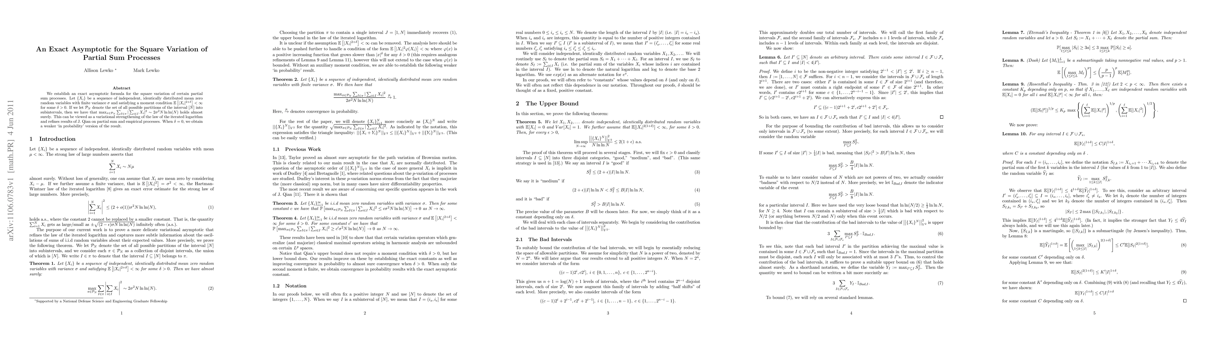 We establish an exact asymptotic formula for the square variation of certain partial sum processes. Let $\{X_{i}\}$ be a sequence of independent, identically distributed mean zero random variables with finite variance $\sigma$ and satisfying a moment condition $\mathbb{E}[|X_{i}|^{2+\delta} ] < \infty$ for some $\delta > 0$. If we let $\mathcal{P}_{N}$ denote the set of all possible partitions of the interval $[N]$ into subintervals, then we have that $\max_{\pi \in \mathcal{P}_{N}} \sum_{I \in \pi} | \sum_{i\in I} X_{i}|^2 \sim 2 \sigma^2N \ln \ln(N)$ holds almost surely. This can be viewed as a variational strengthening of the law of the iterated logarithm and refines results of J. Qian on partial sum and empirical processes. When $\delta = 0$, we obtain a weaker `in probability' version of the result.