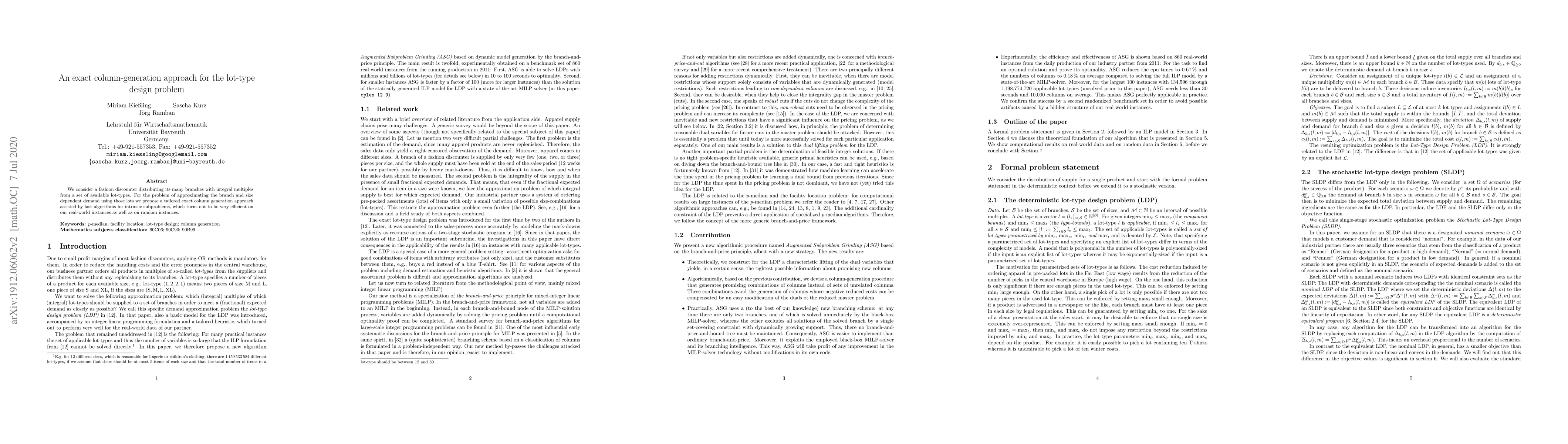 We consider a fashion discounter distributing its many branches with integral multiples from a set of available lot-types. For the problem of approximating the branch and size dependent demand using those lots we propose a tailored exact column generation approach assisted by fast algorithms for intrinsic subproblems, which turns out to be very efficient on our real-world instances as well as on random instances.