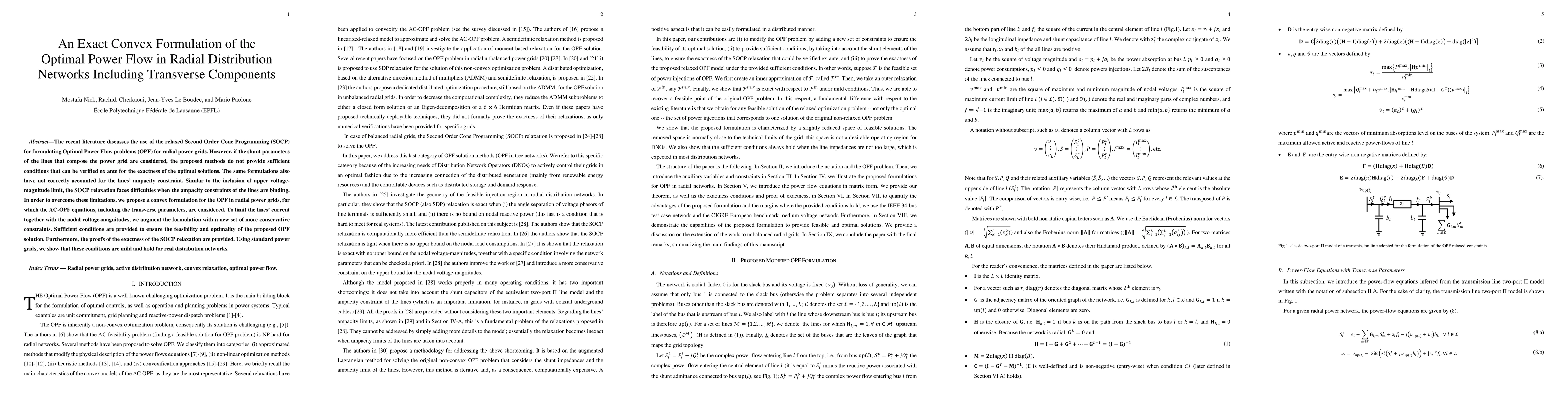 This paper proposes a new convex formulation for Optimal Power Flow (OPF) in radial distribution networks that accurately considers shunt parameters and line ampacity constraints, providing sufficient conditions for exactness and feasibility. The method improves upon existing SOCP relaxations by incorporating more conservative constraints.