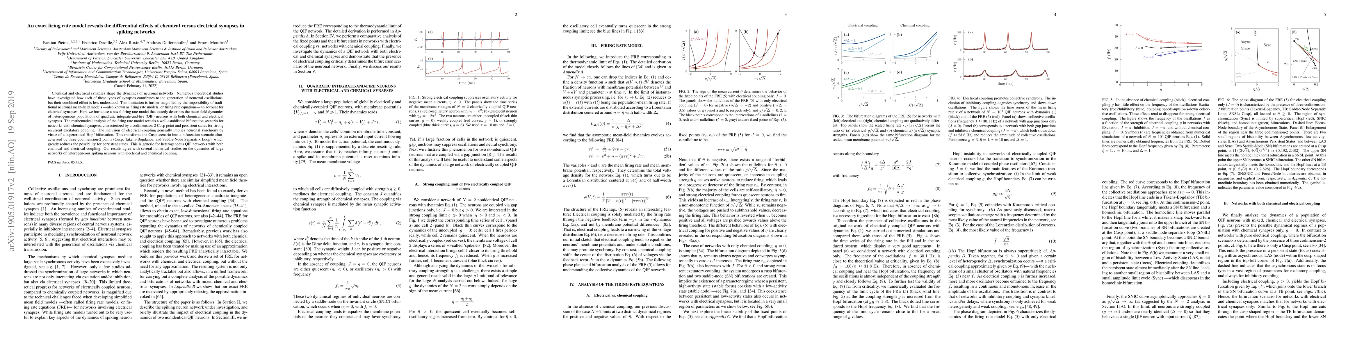This paper introduces a novel firing rate model to analyze the dynamics of spiking networks with both chemical and electrical synapses. The model reveals that chemical synapses support persistent states, while electrical synapses promote neuronal synchrony, transforming the dynamics into a scenario characterized by multiple codimension-2 bifurcation points.