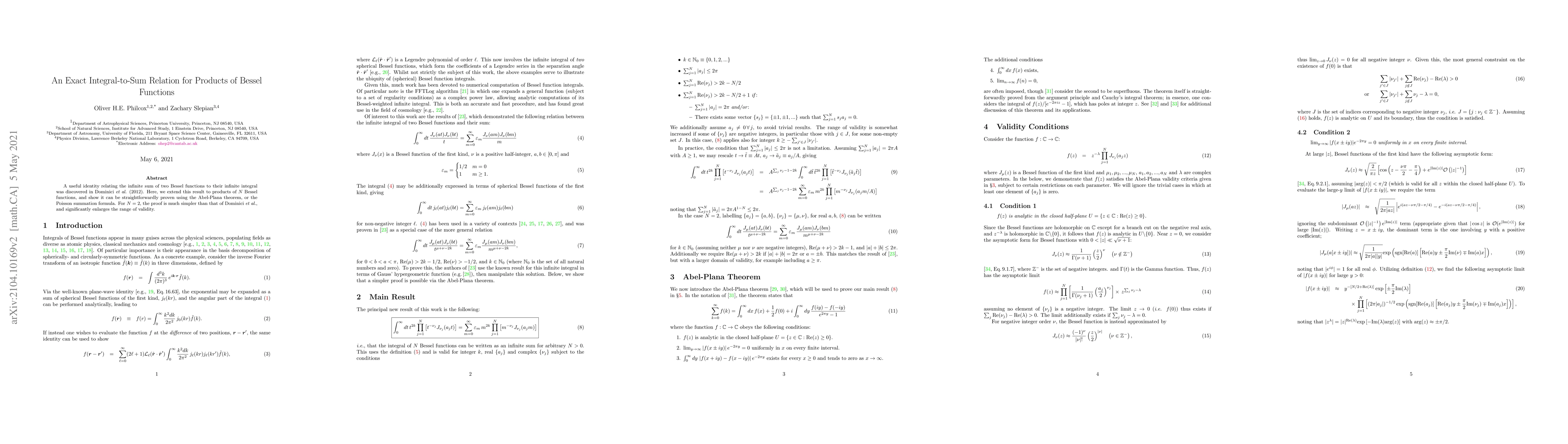 Researchers have discovered an exact identity relating products of N Bessel functions to their infinite integral, extending a previous result for two Bessel functions.