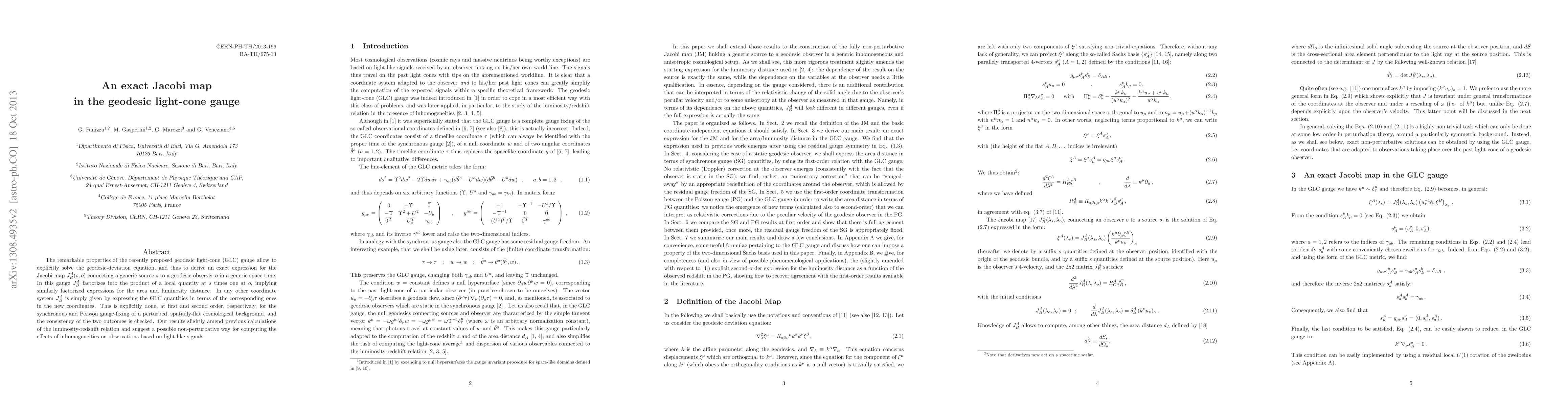 Researchers derive an exact expression for the Jacobi map connecting a source to a geodesic observer in a generic spacetime, revealing new insights into the effects of inhomogeneities on light-like signals.