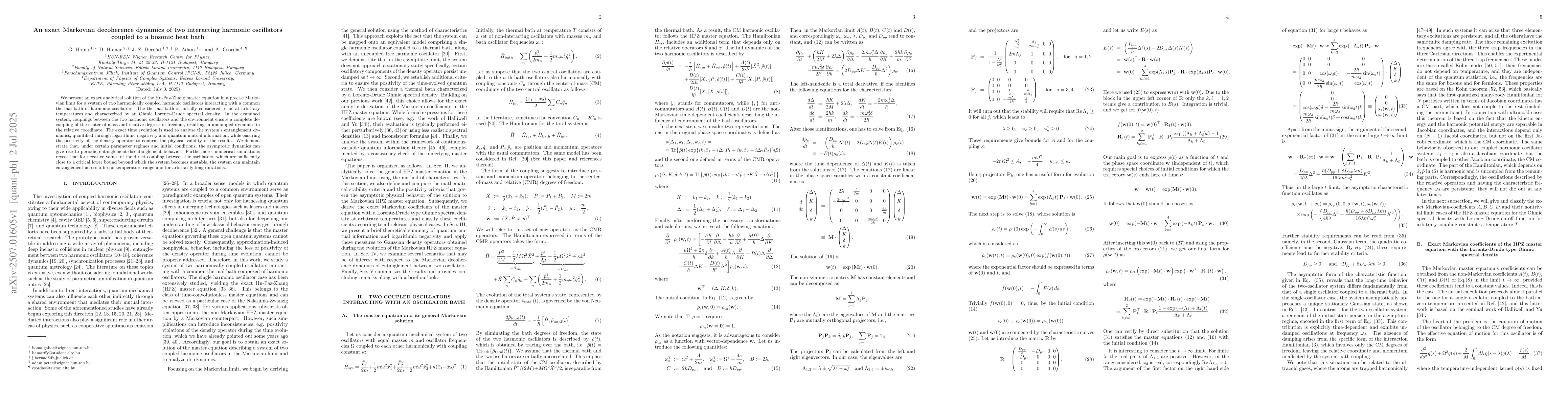 This research provides an exact analytical solution for the decoherence dynamics of two coupled harmonic oscillators interacting with a thermal bosonic bath, characterized by an Ohmic spectral density. It reveals that under specific conditions, the system can exhibit periodic entanglement-disentanglement behavior and maintain entanglement across a broad temperature range and for long durations, even when the direct coupling between oscillators is negative and close to a critical lower bound.