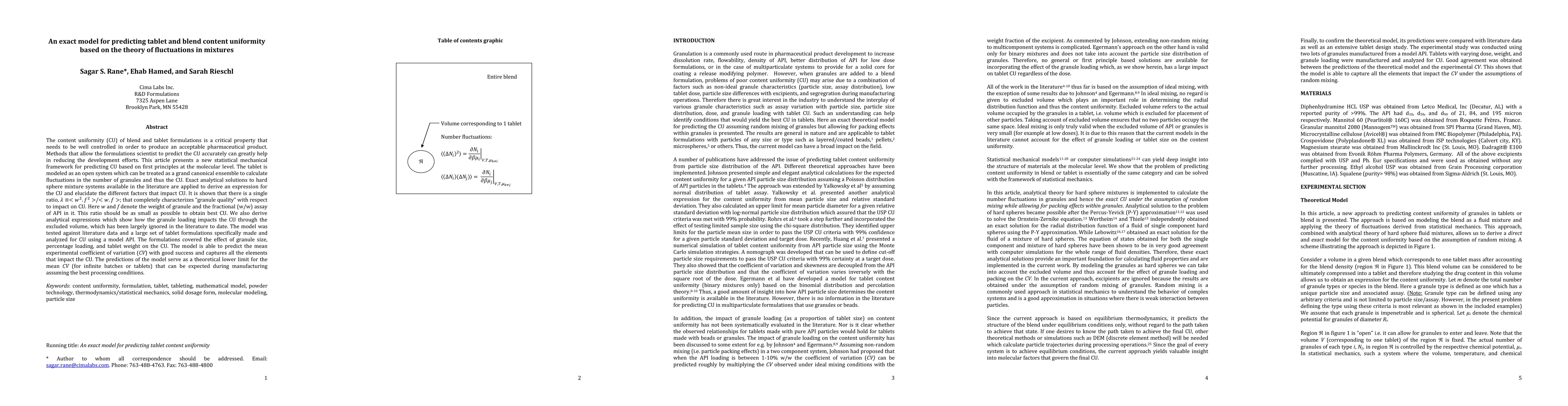 The content uniformity (CU) of blend and tablet formulations is a critical