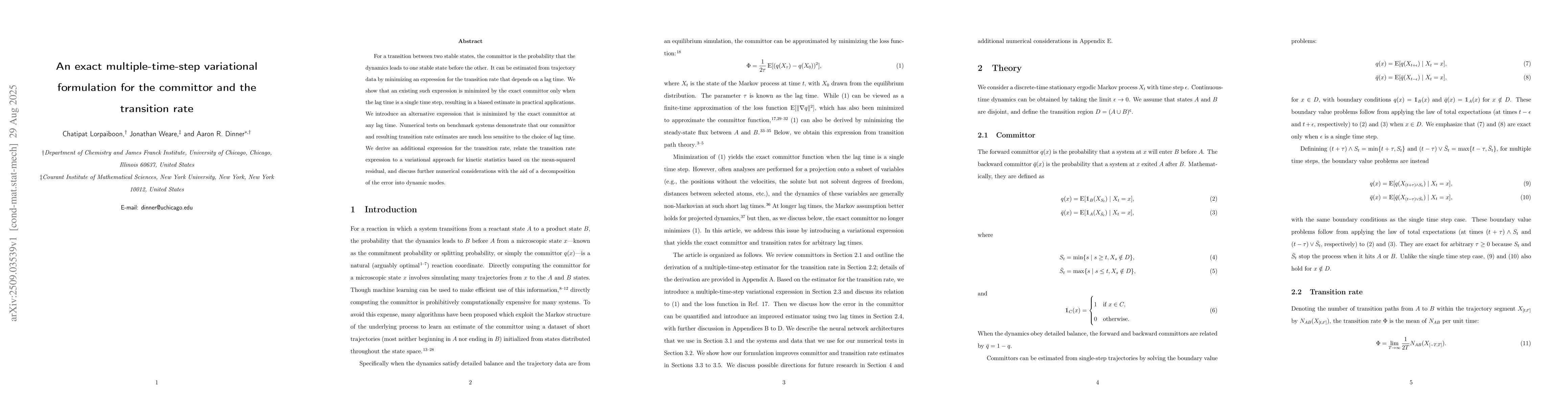 For a transition between two stable states, the committor is the probability that the dynamics leads to one stable state before the other. It can be estimated from trajectory data by minimizing an expression for the transition rate that depends on a lag time. We show that an existing such expression is minimized by the exact committor only when the lag time is a single time step, resulting in a biased estimate in practical applications. We introduce an alternative expression that is minimized by the exact committor at any lag time. Numerical tests on benchmark systems demonstrate that our committor and resulting transition rate estimates are much less sensitive to the choice of lag time. We derive an additional expression for the transition rate, relate the transition rate expression to a variational approach for kinetic statistics based on the mean-squared residual, and discuss further numerical considerations with the aid of a decomposition of the error into dynamic modes.