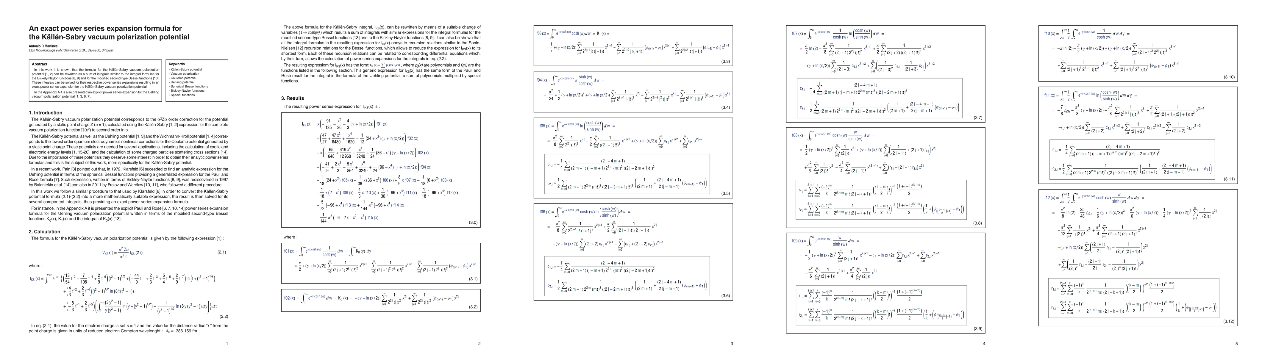 In this work it is presented an exact power series formula for the Kallen-Sabry vacuum polarization potential.