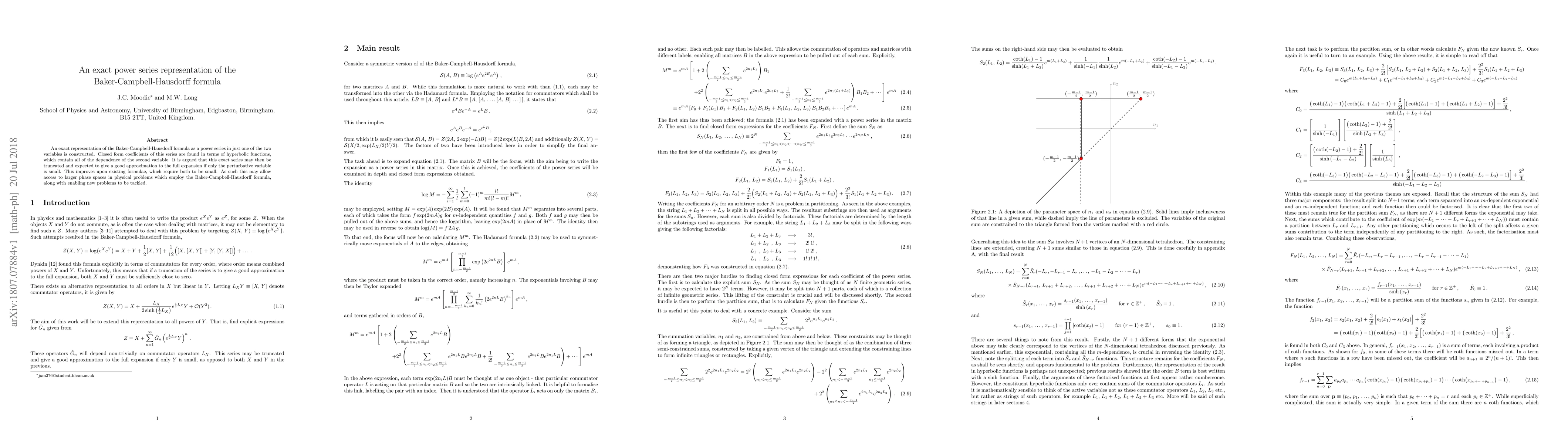 An exact representation of the Baker-Campbell-Hausdorff formula as a power series in just one of the two variables is constructed. Closed form coefficients of this series are found in terms of hyperbolic functions, which contain all of the dependence of the second variable. It is argued that this exact series may then be truncated and expected to give a good approximation to the full expansion if only the perturbative variable is small. This improves upon existing formulae, which require both to be small. As such this may allow access to larger phase spaces in physical problems which employ the Baker-Campbell-Hausdorff formula, along with enabling new problems to be tackled.