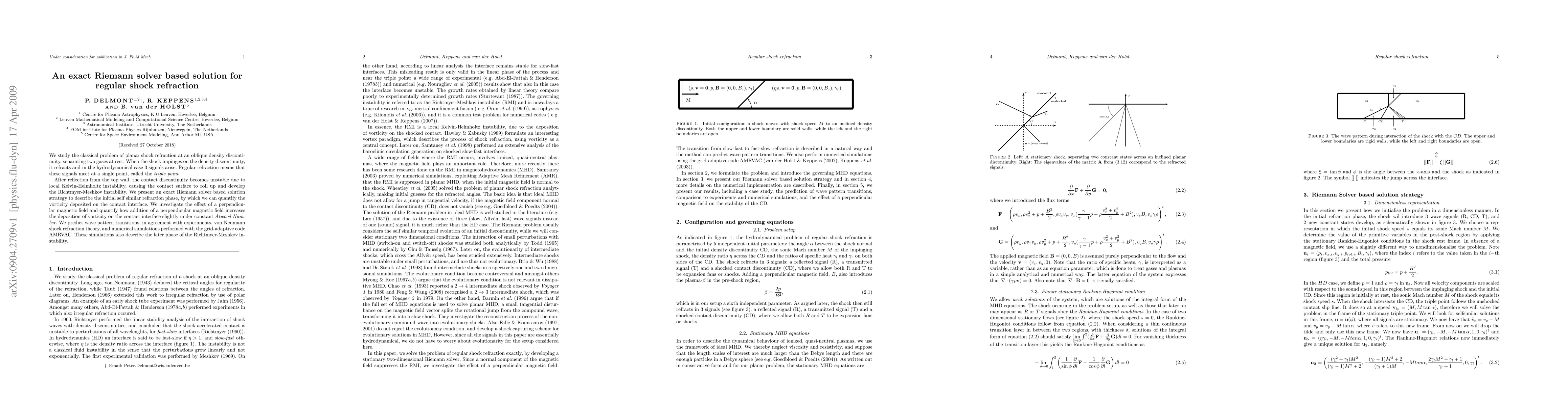 Researchers developed an exact Riemann solver to study shock refraction in gases separated by a density discontinuity, revealing the role of magnetic fields in increasing vorticity deposition on contact interfaces.