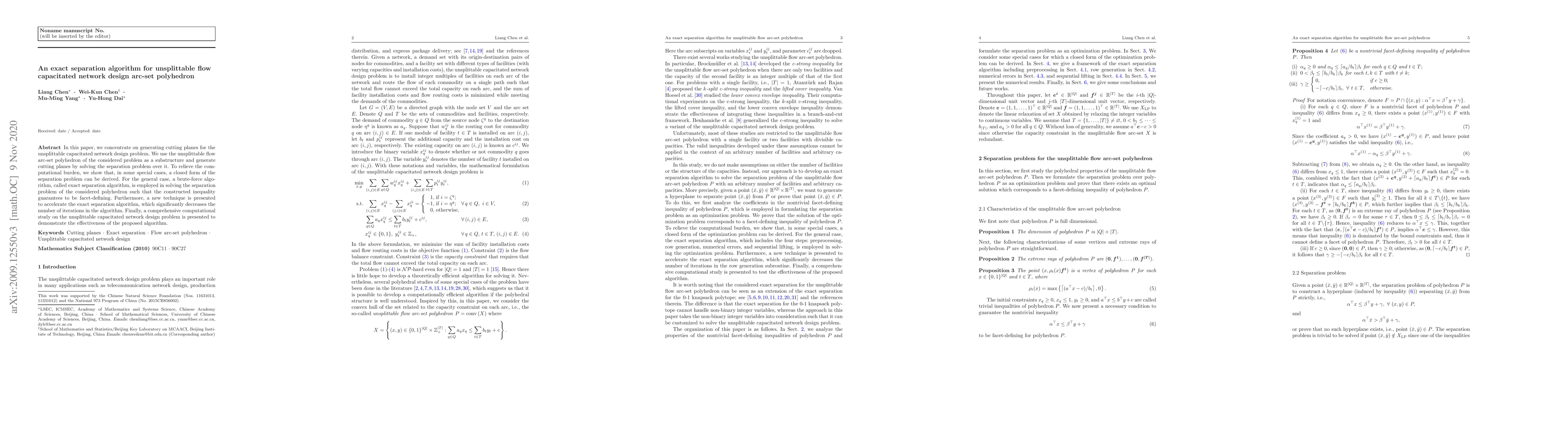 This paper develops an exact separation algorithm for generating cutting planes to solve the unsplittable capacitated network design problem. It leverages the arc-set polyhedron and introduces a new technique to accelerate the algorithm, significantly reducing iterations, and demonstrates its effectiveness through computational studies.