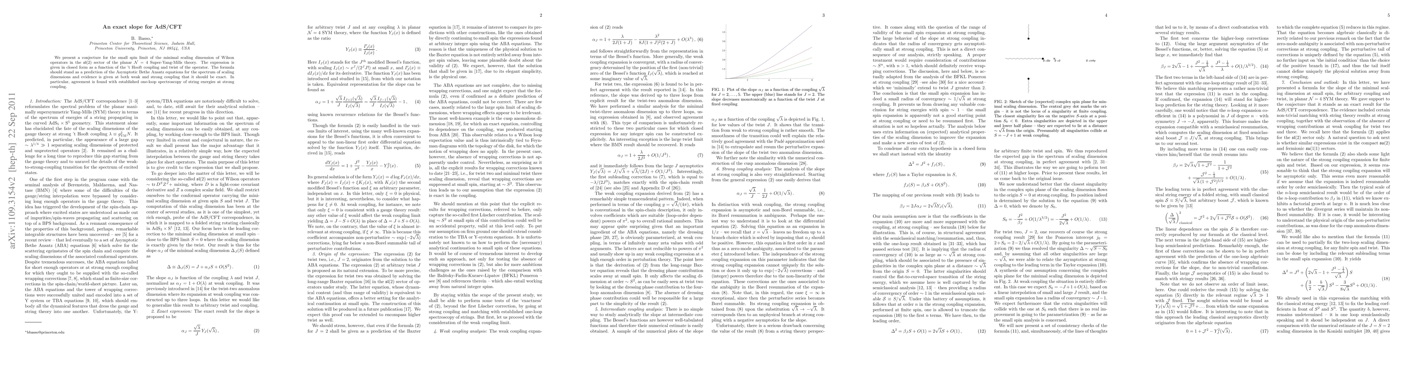 We present a conjecture for the small spin limit of the minimal scaling dimension of Wilson operators in the sl(2) sector of the planar N=4 Super-Yang-Mills theory. The expression is given in closed form as a function of the 't Hooft coupling and twist of the operator. The formula should stand as a prediction of the Asymptotic Bethe Ansatz equations for the spectrum of scaling dimensions and evidence is given at both weak and strong coupling that it should be exact. In particular, agreement is found with established one-loop spectroscopy of string energies at strong coupling.